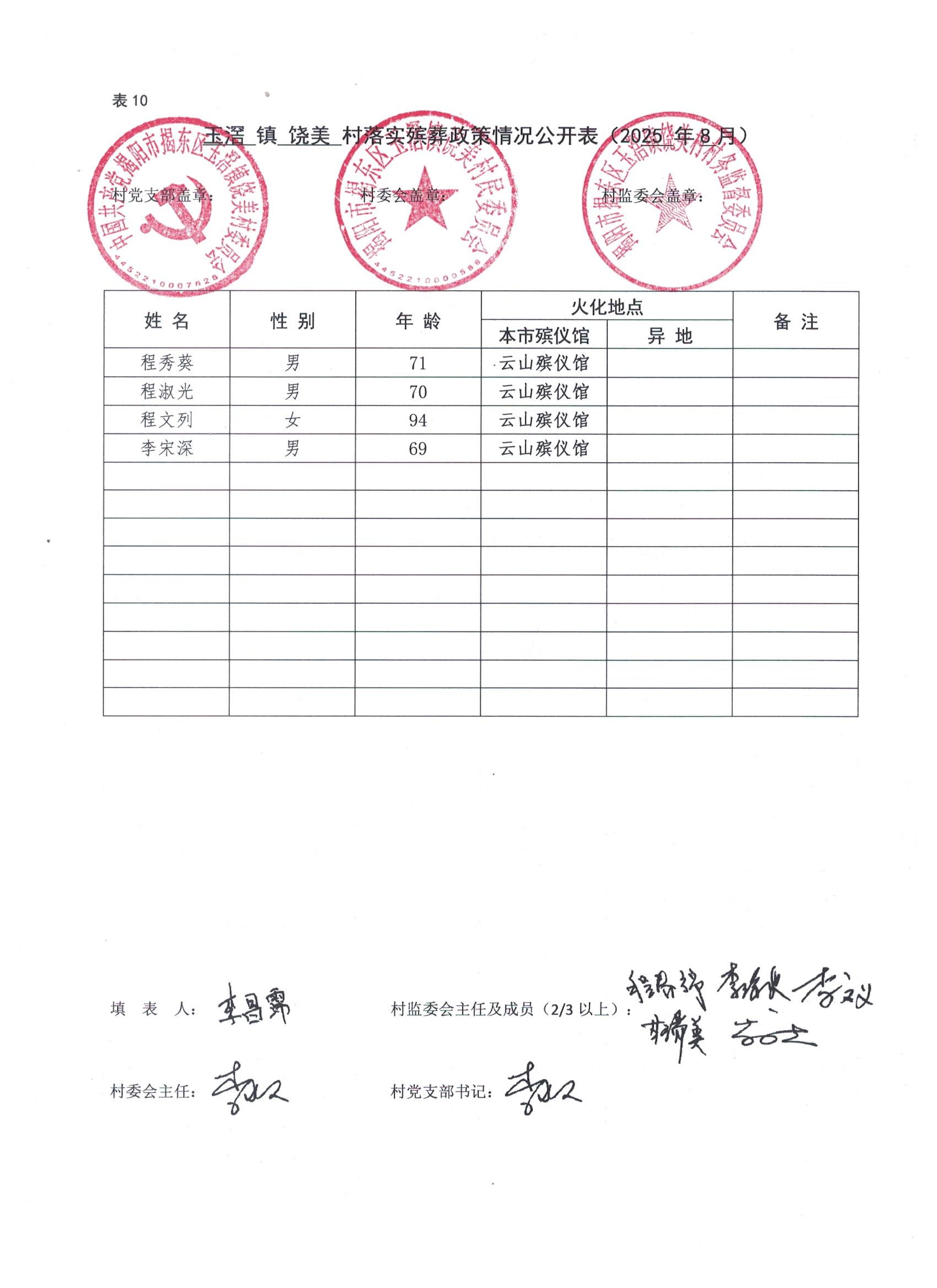 饶美村2025年8月份落实殡葬政策情况