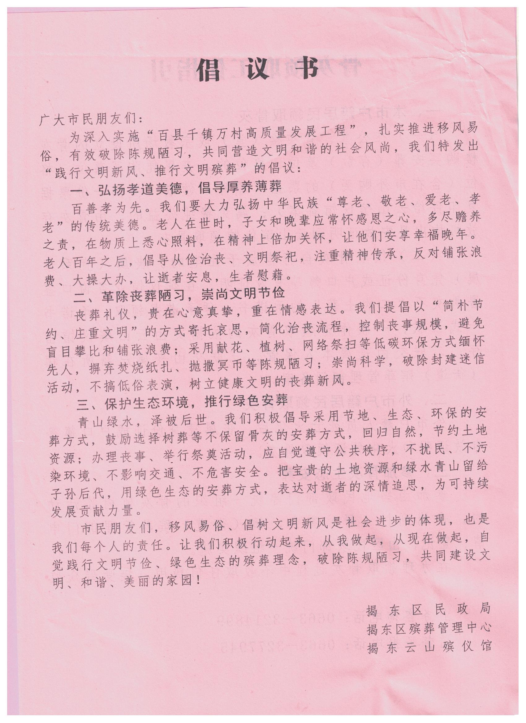 践行文明新风推行文明殡葬倡议书