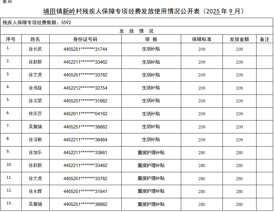 (2025年09月)残疾人保障专项经费的数额、分配、使用情况发放情况