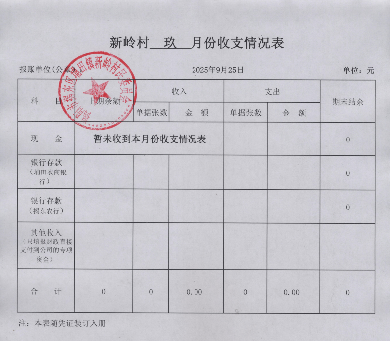 (2025年09月)财务收支情况