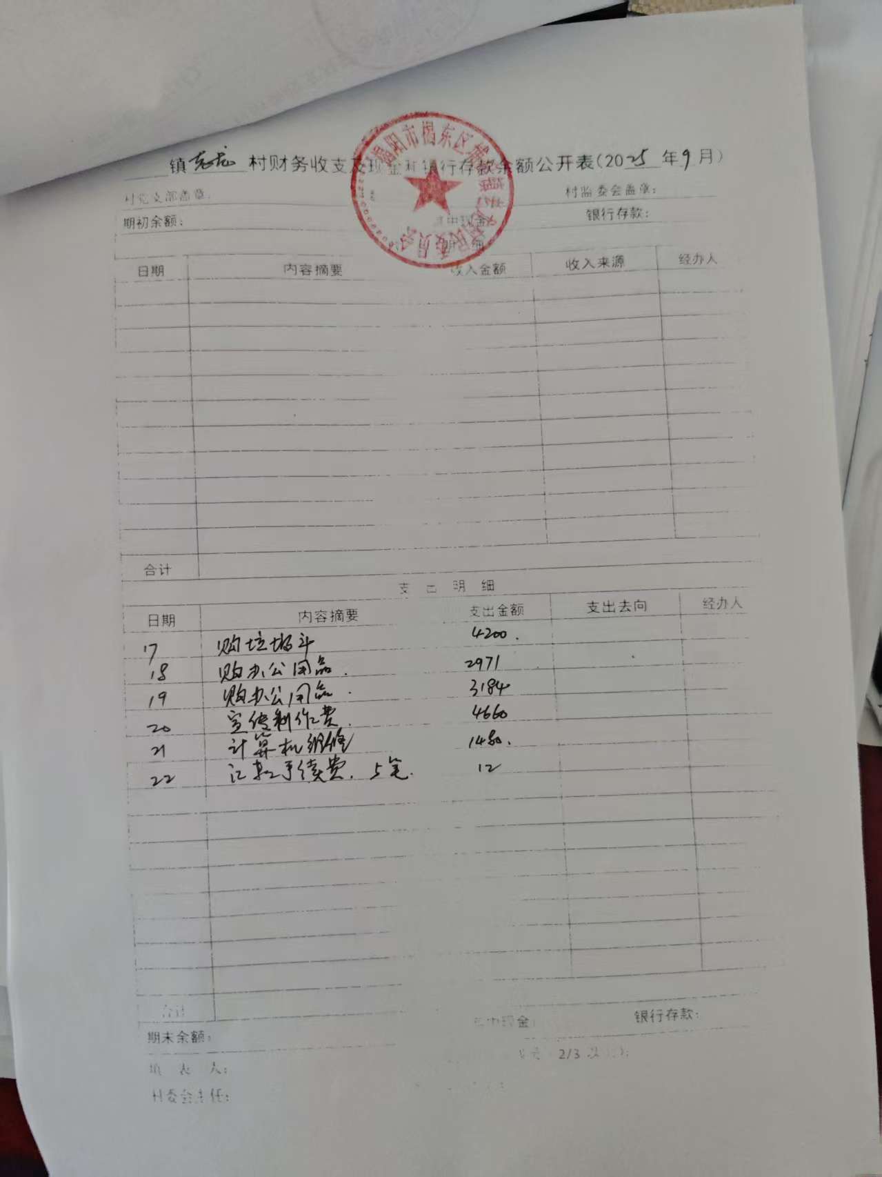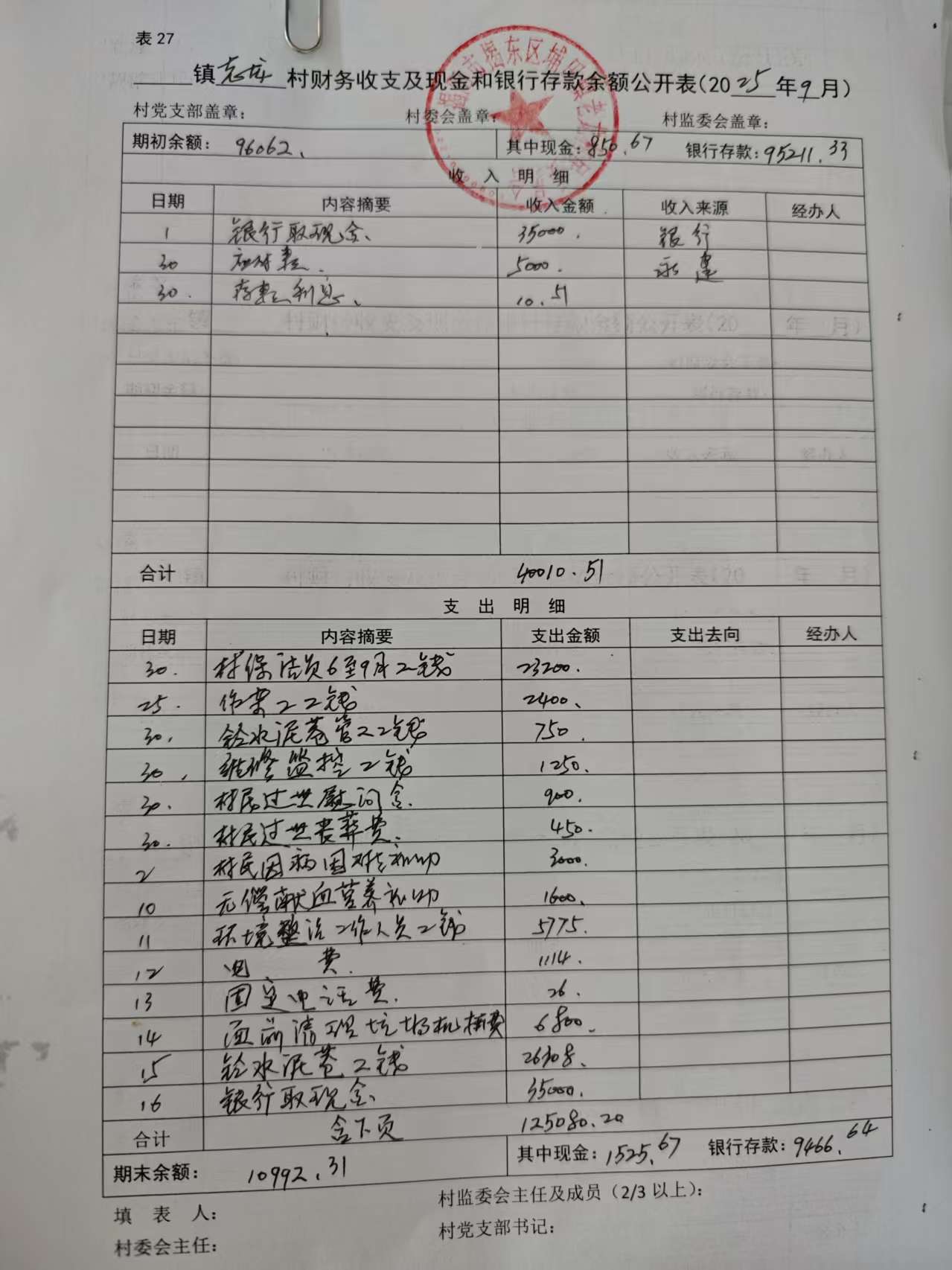 2025年9月财务收支