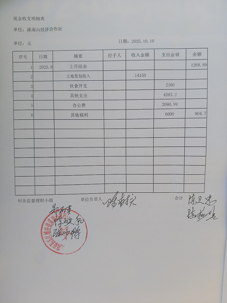 2025年9月份收支情况