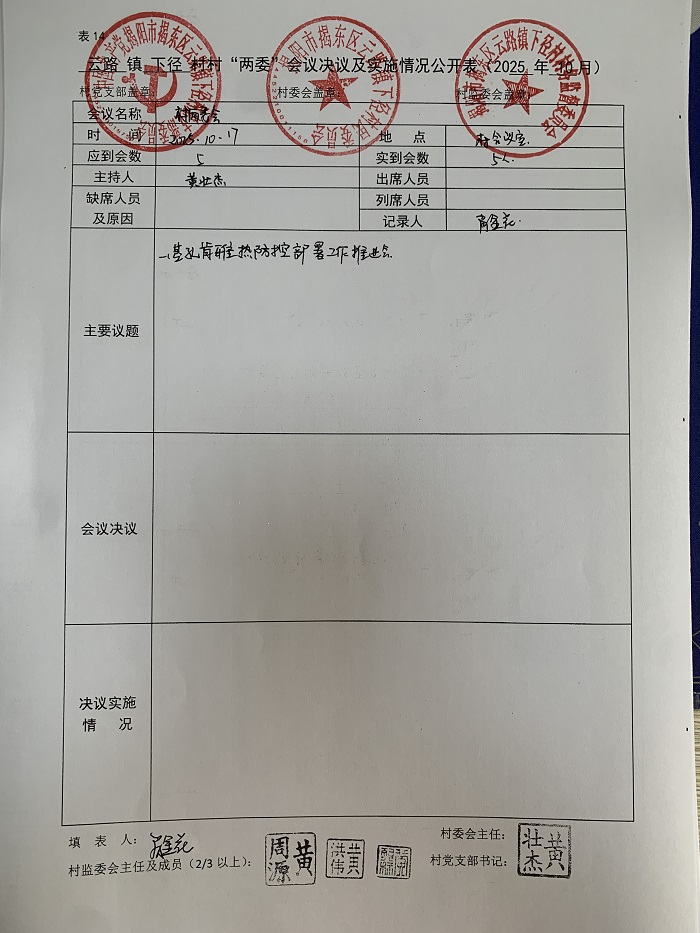 云路镇下径村村“两委”会议决议及实施情况2025年10月