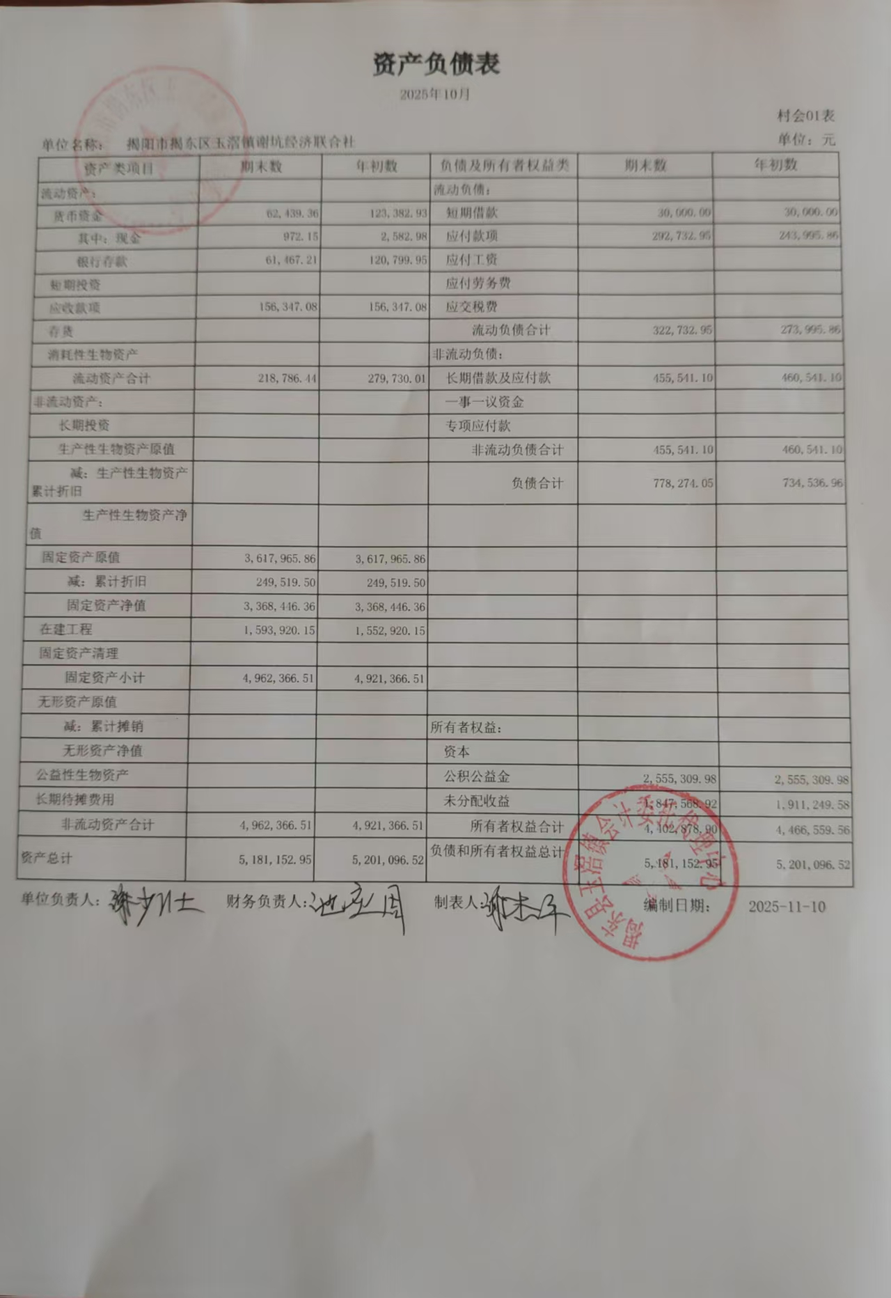 2025年10月三资管理情况