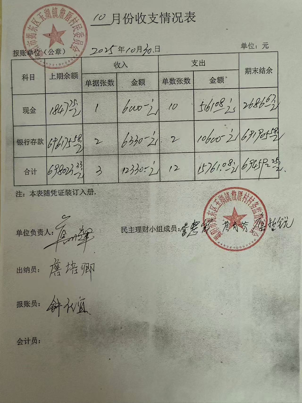 詹厝村10月份收入支出情况公布表