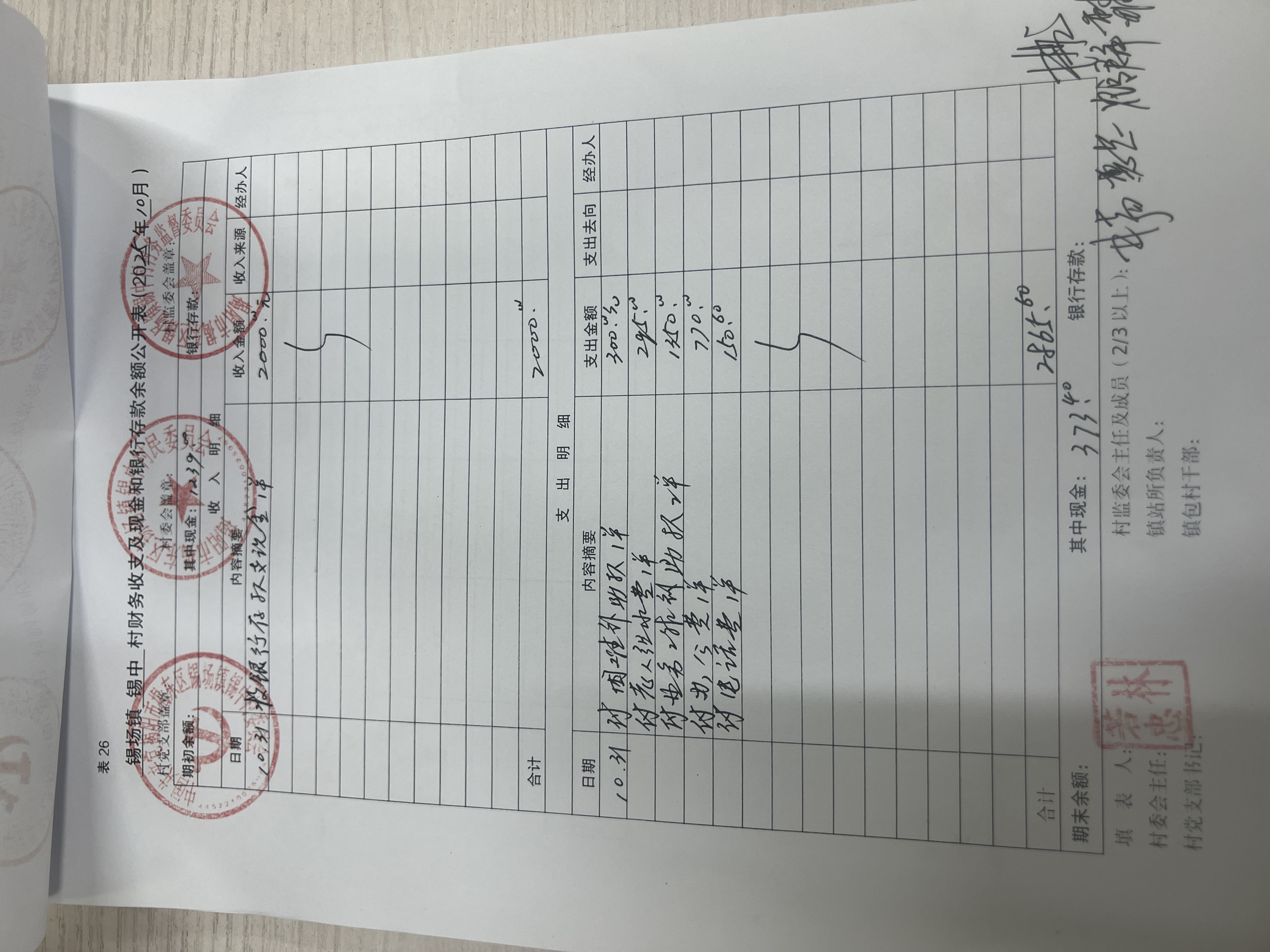 (10月份)各项收入、支出明细及现金、银行存款余额