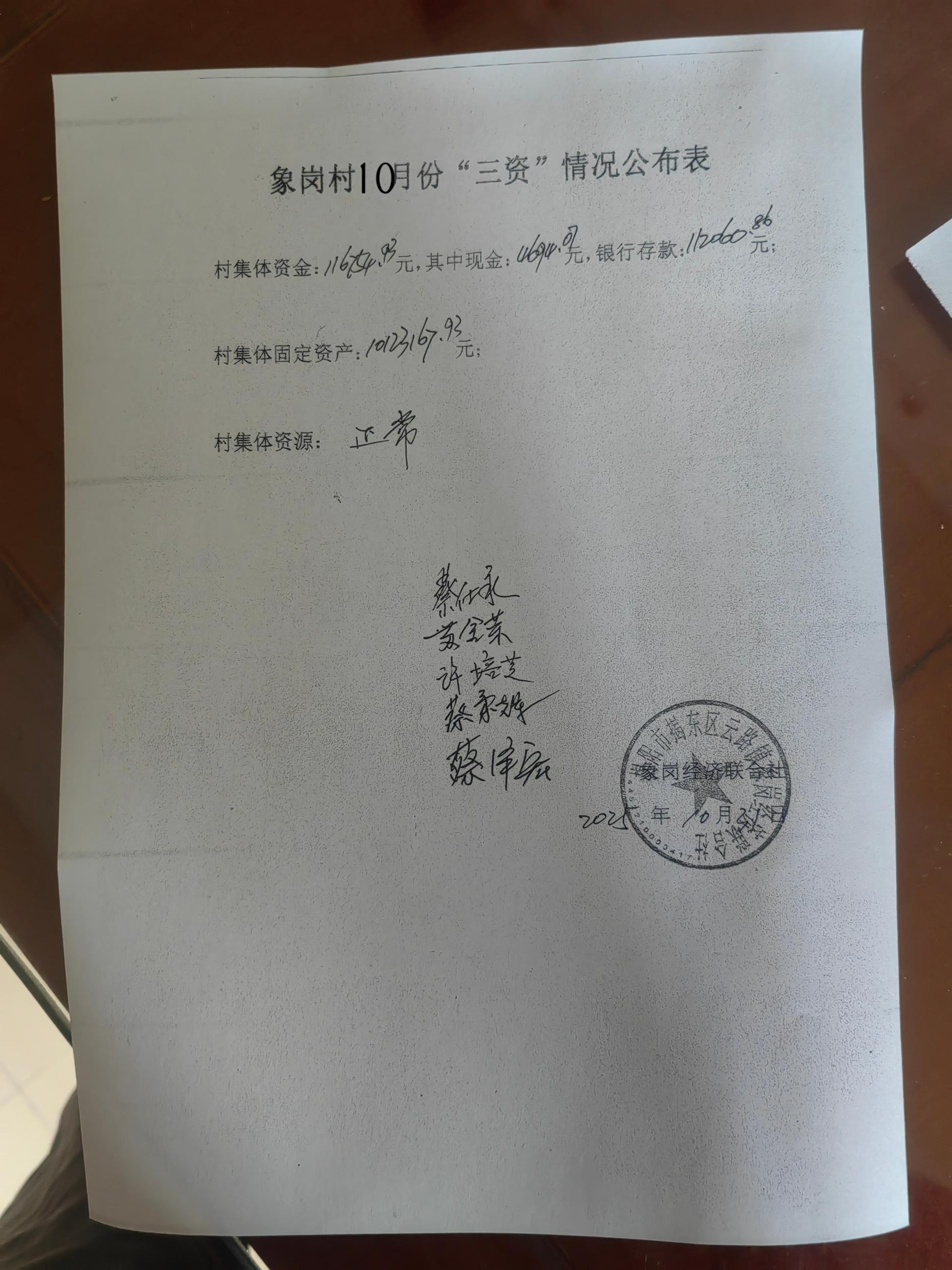 象岗村10月份三资情况公开表