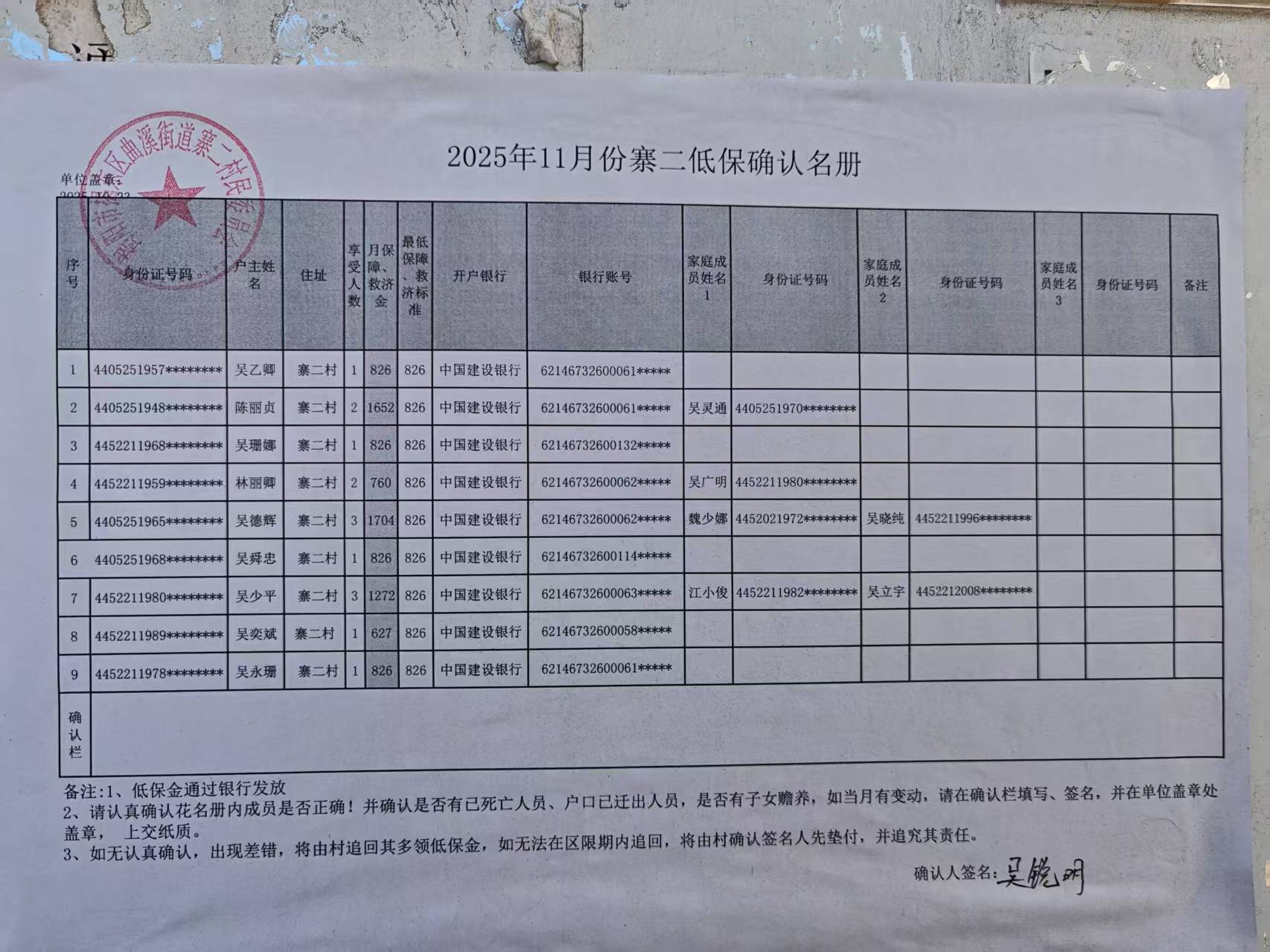 2025年11月份寨二低保确认名册