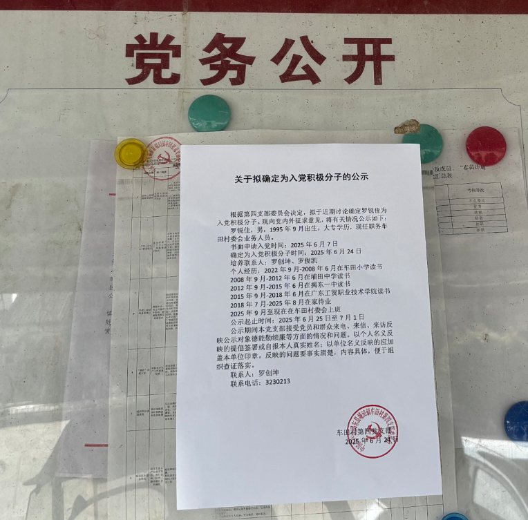 关于拟确定罗锐佳为入党积极分子的公示