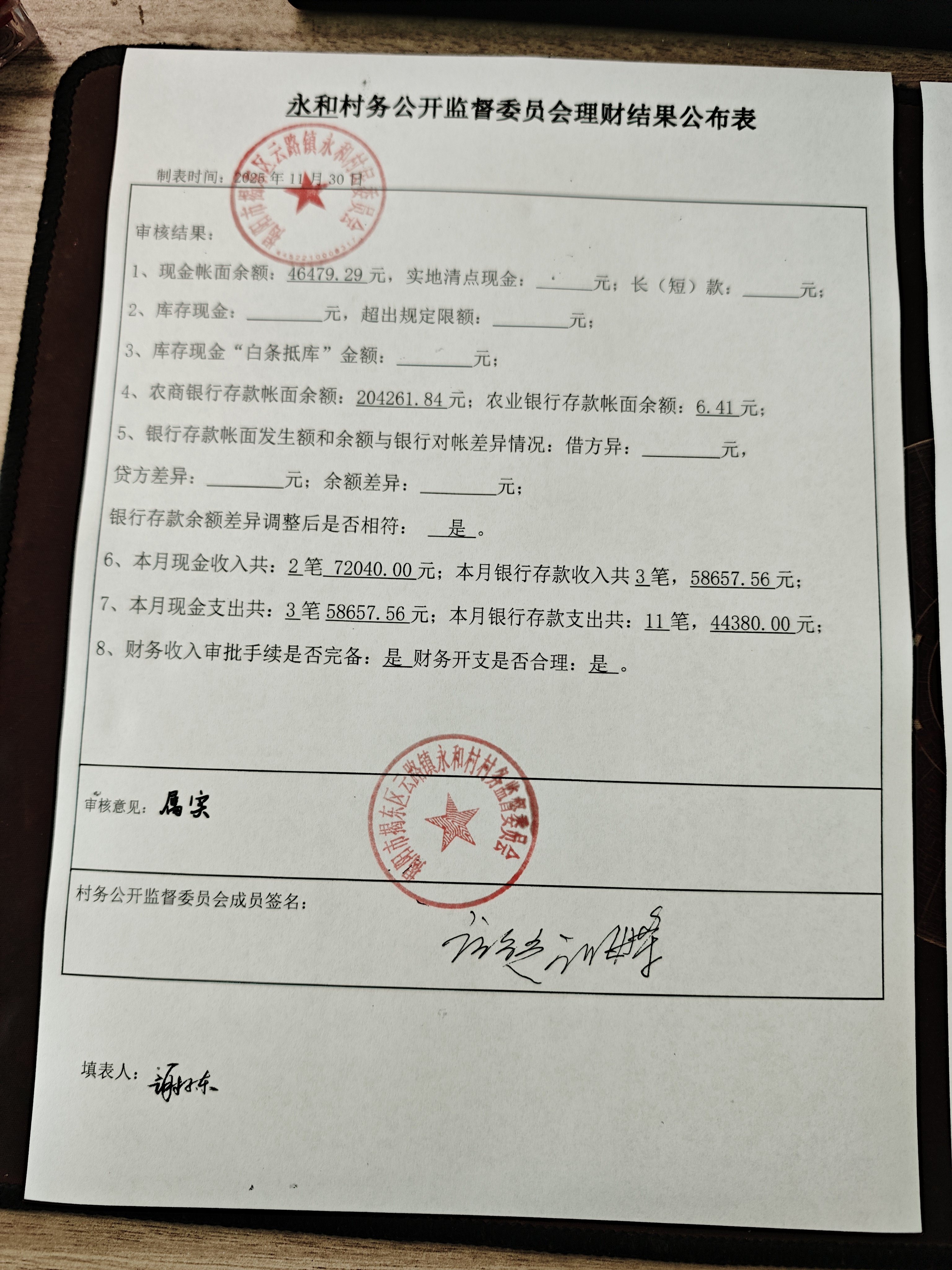 村务监督委员会会议决议及实施情况(2025年11月)