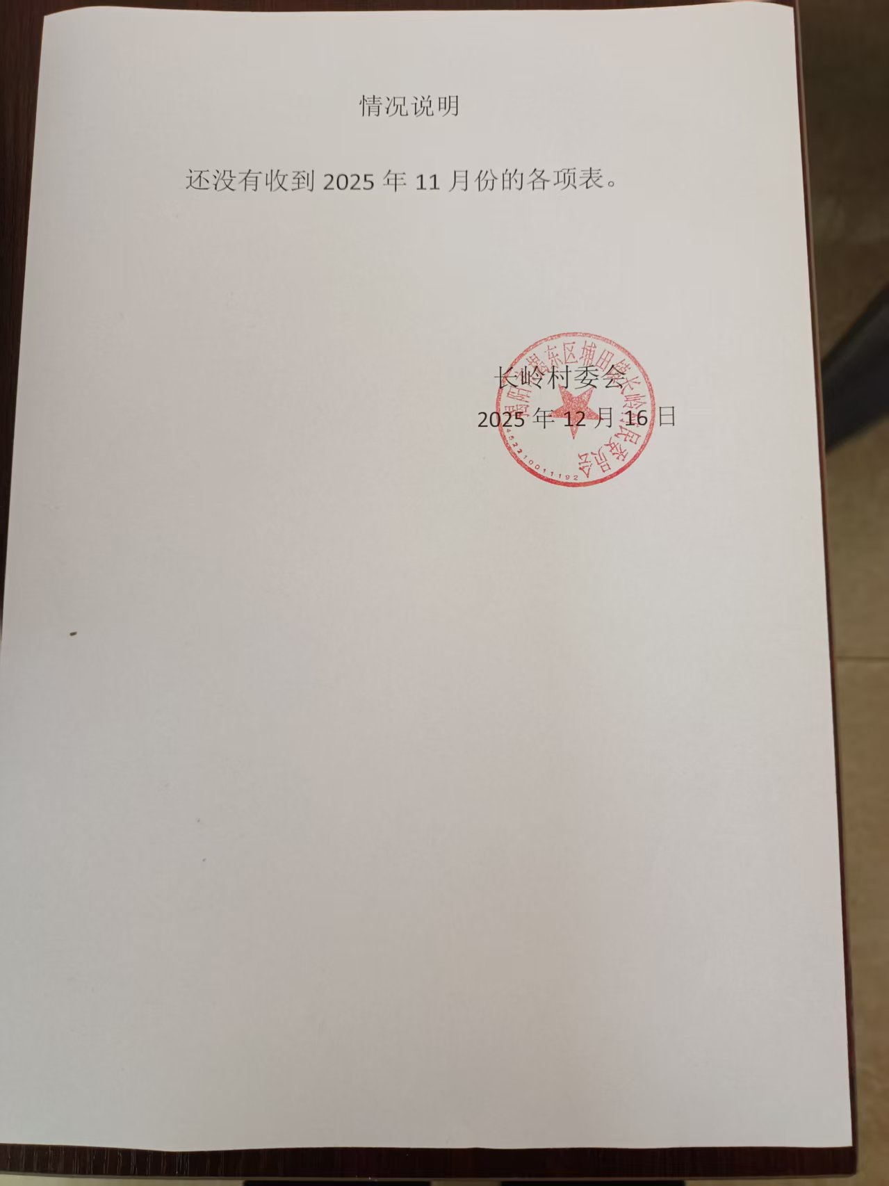 长岭村2025年11月份收支情况表