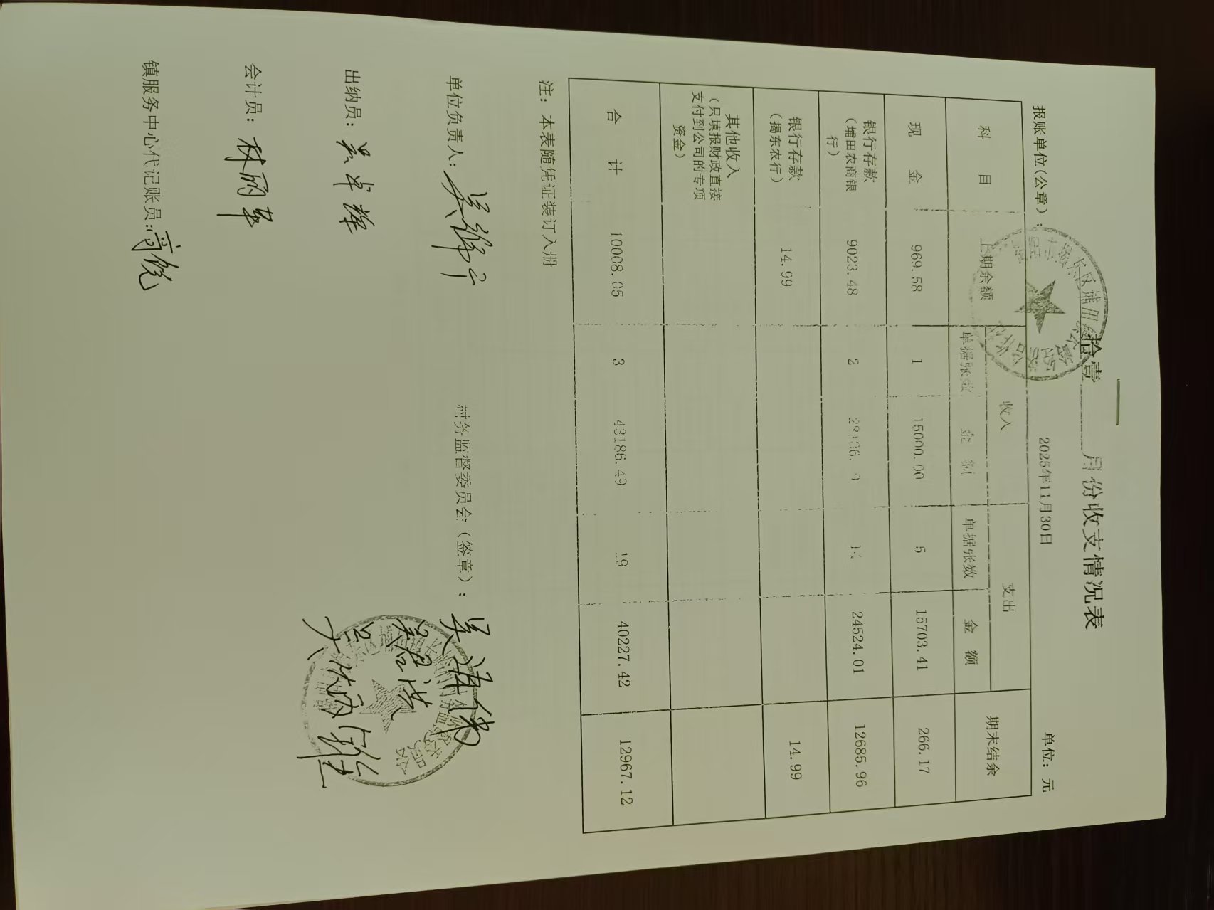 长岭村2025年11月份收支情况表
