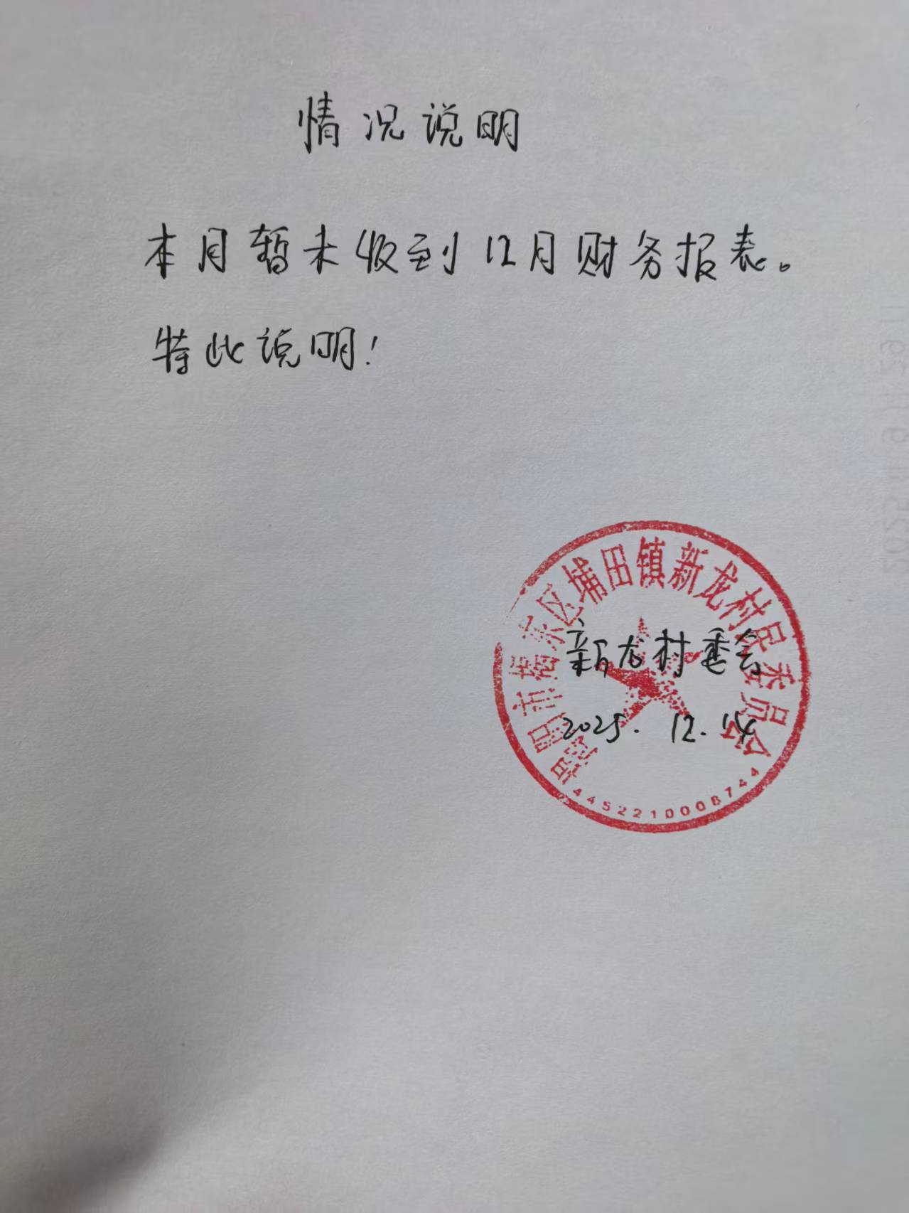 财务收支情况说明(12月份)