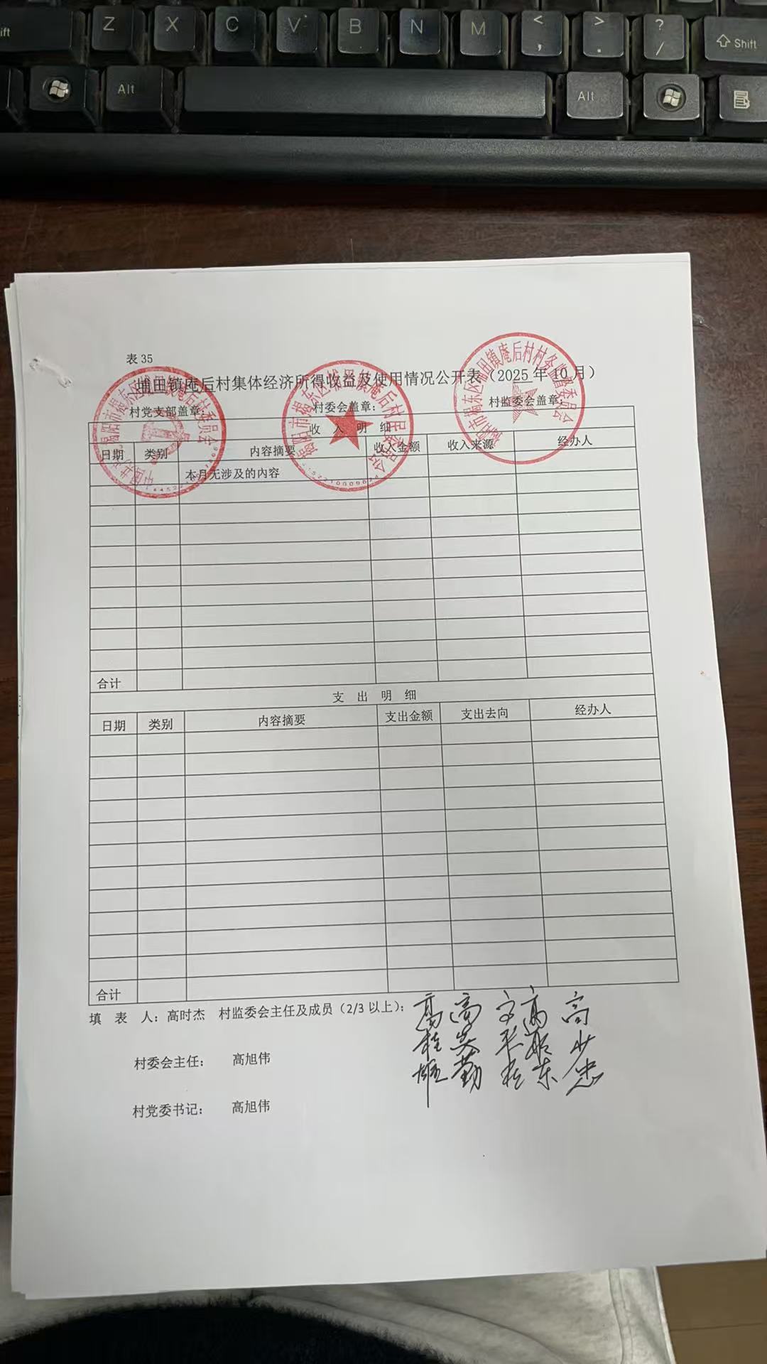 埔田镇庵后村集体经济所得收益及使用情况公开表(2025年10月)