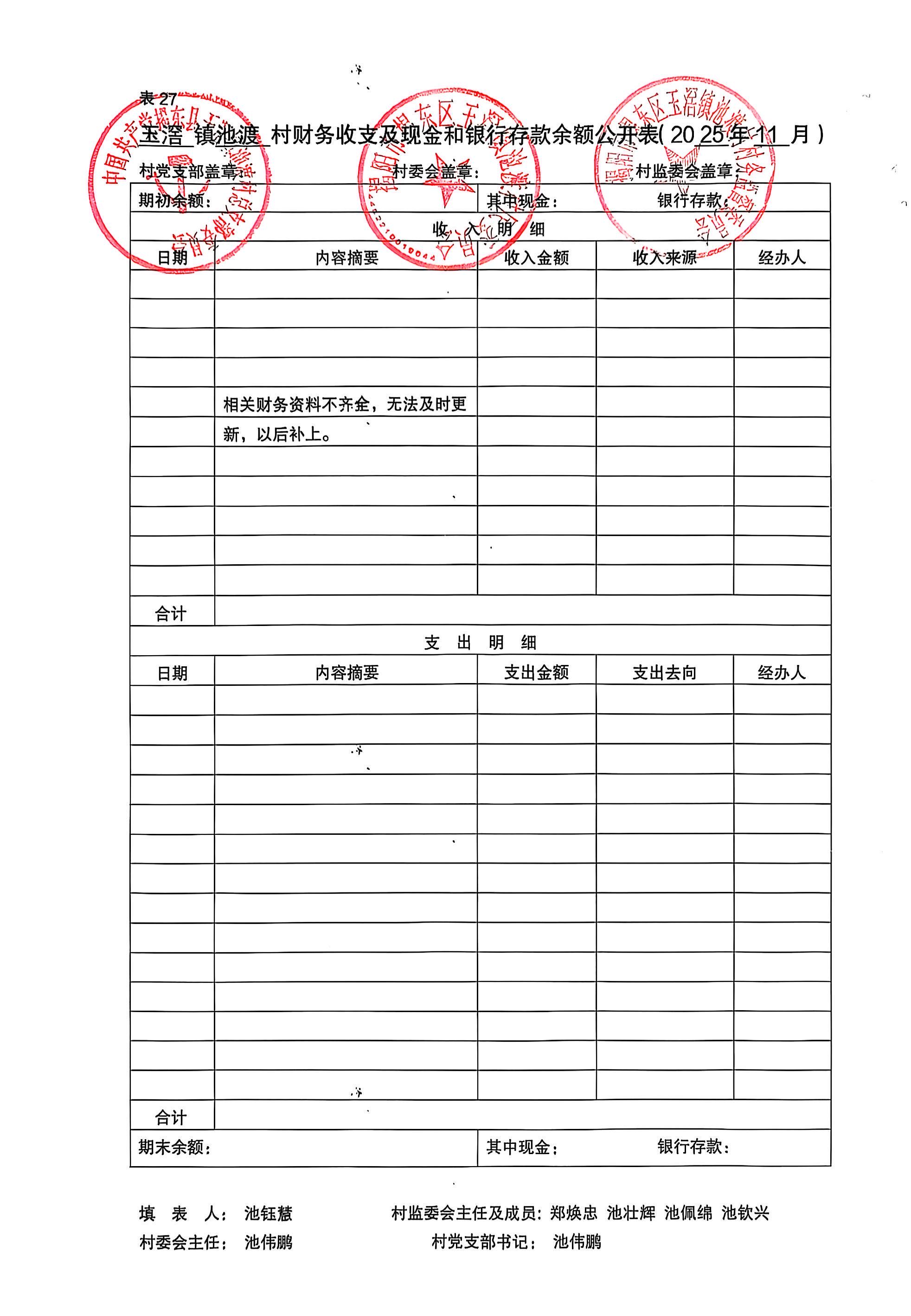 2025年11月财务收支情况