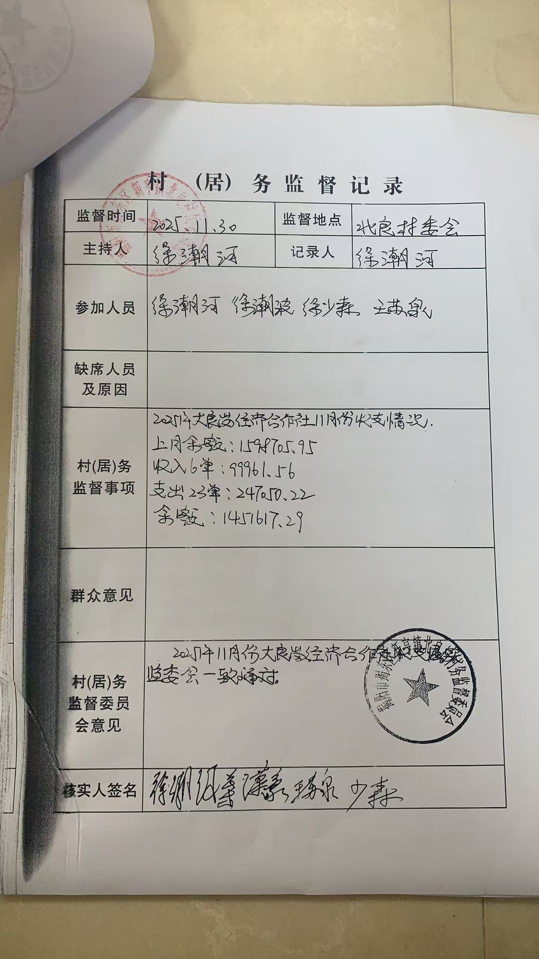 北良村2025年11月份村务监督活动记录表