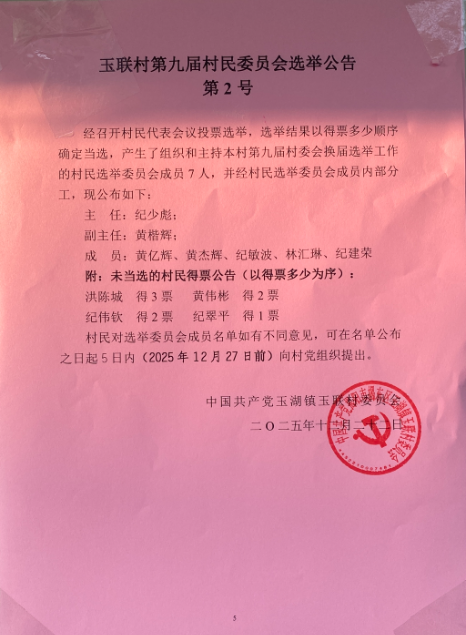 玉联村第九届村民委员会选举公告