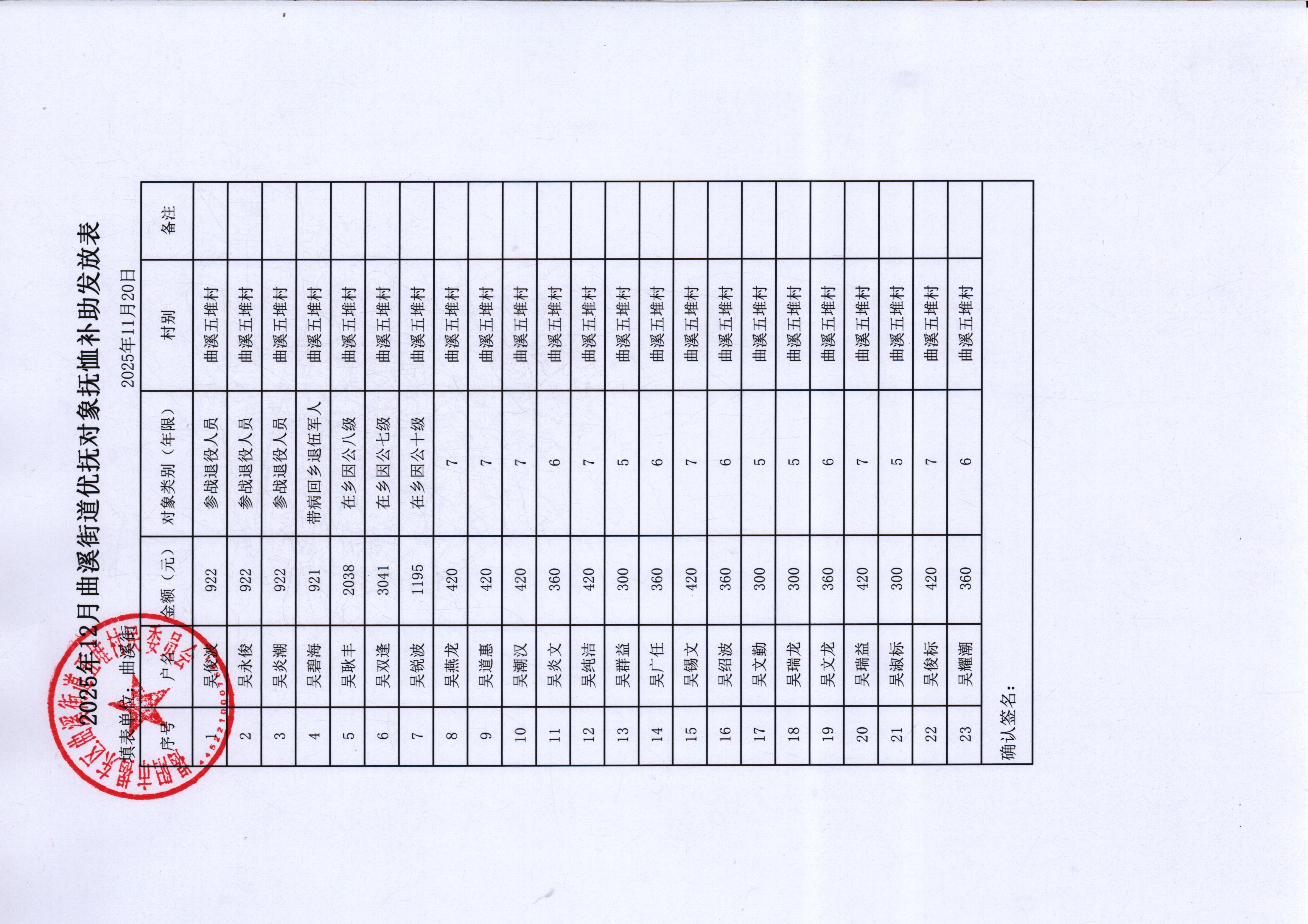 2025年12优抚对象补助表