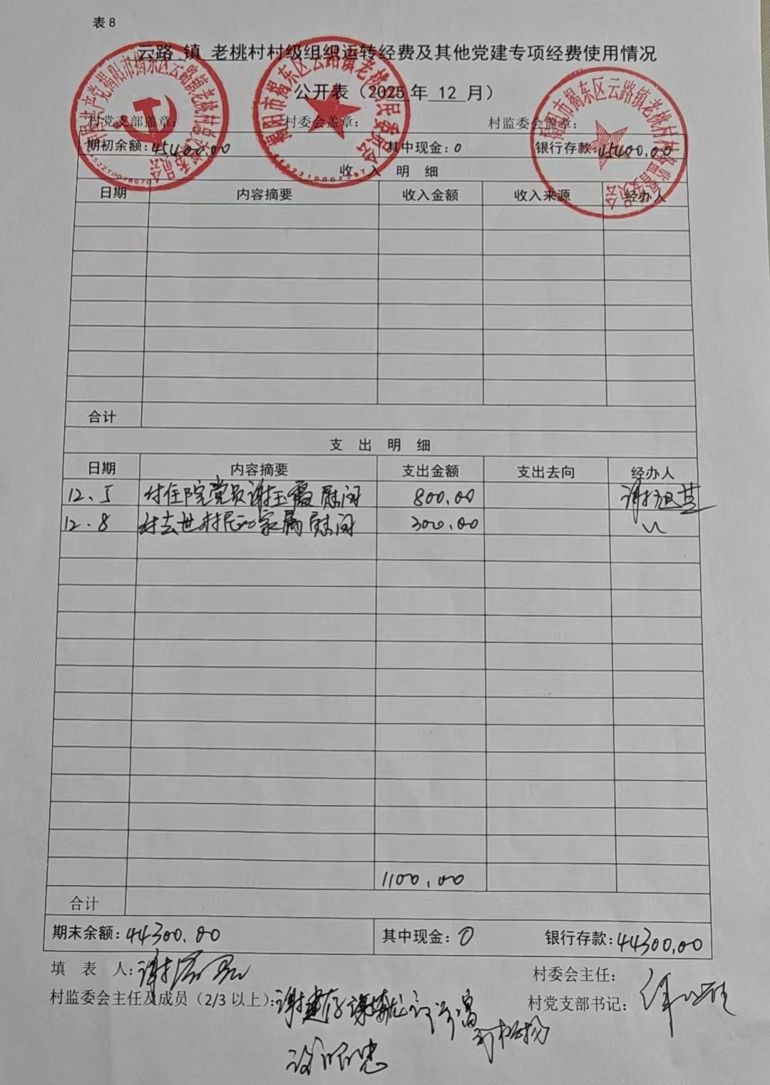 云路镇老桃村村级组织运转经费及其他党建专项经费使用情况(2026年1月份)