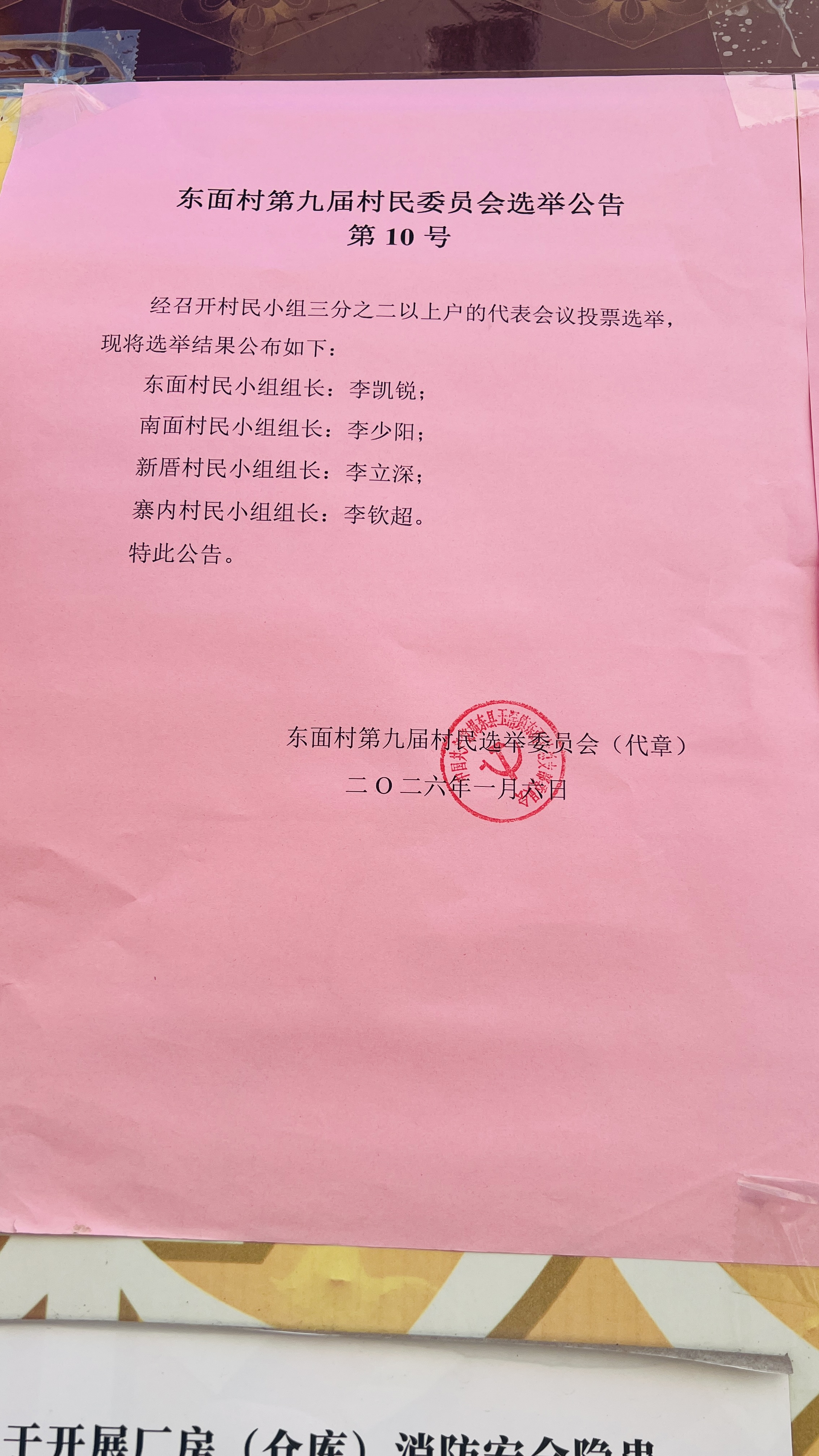 玉滘镇东面村第九届村民委员会选举公告(第10号)