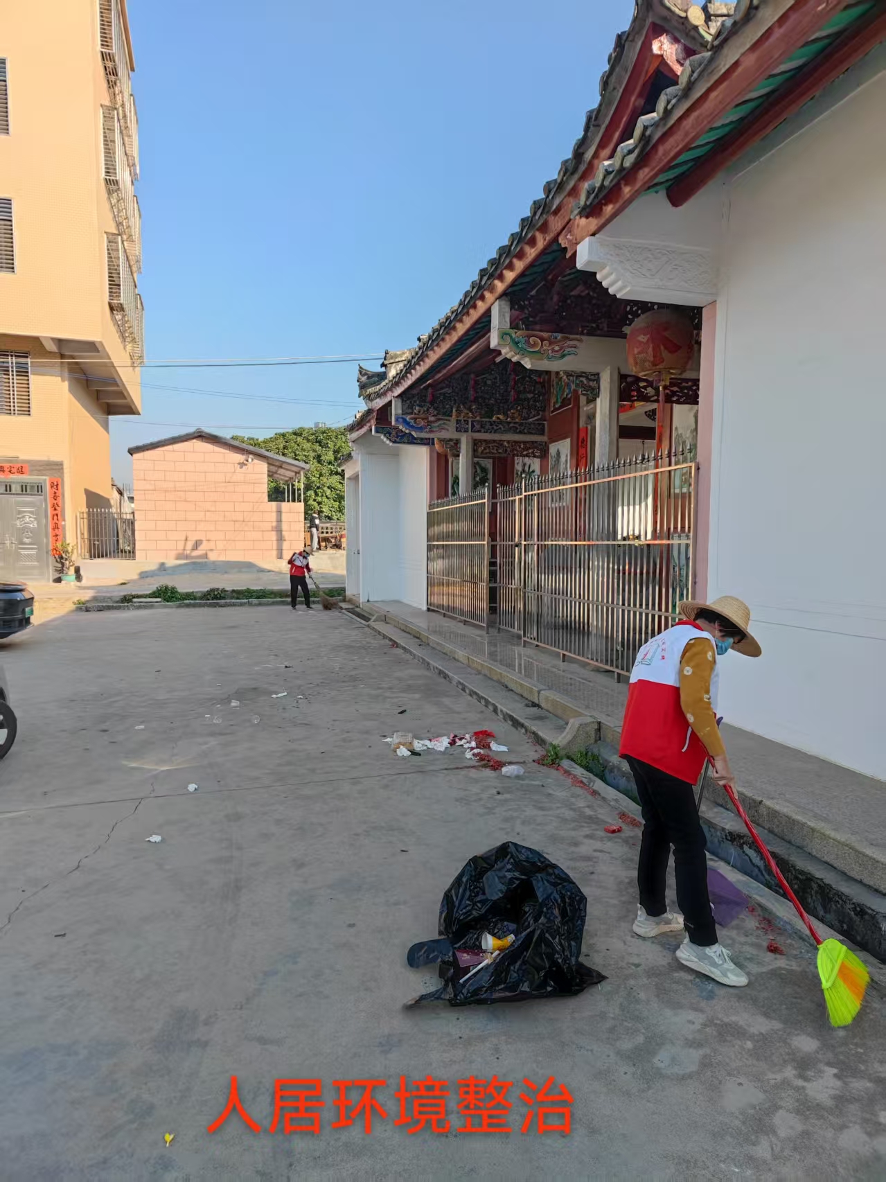 中夏村人居环境整治---清扫文化公园及各村道
