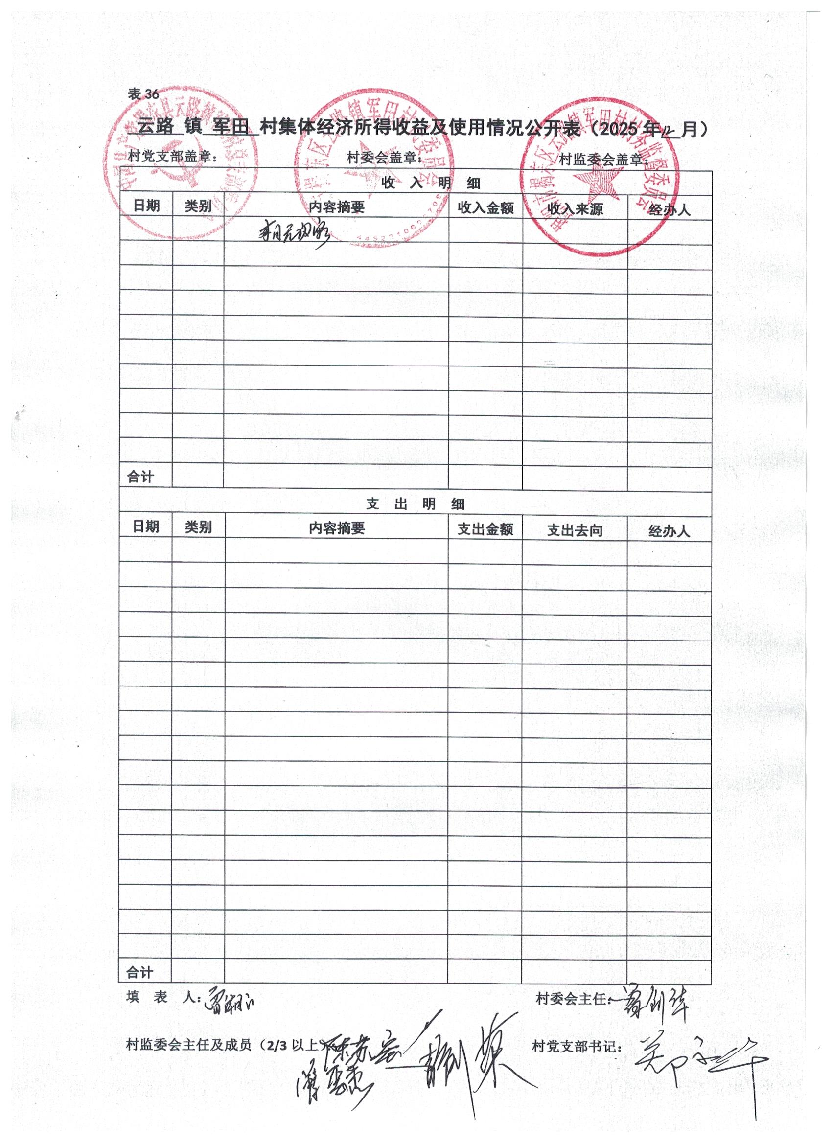 2025年12月军田村集体经济