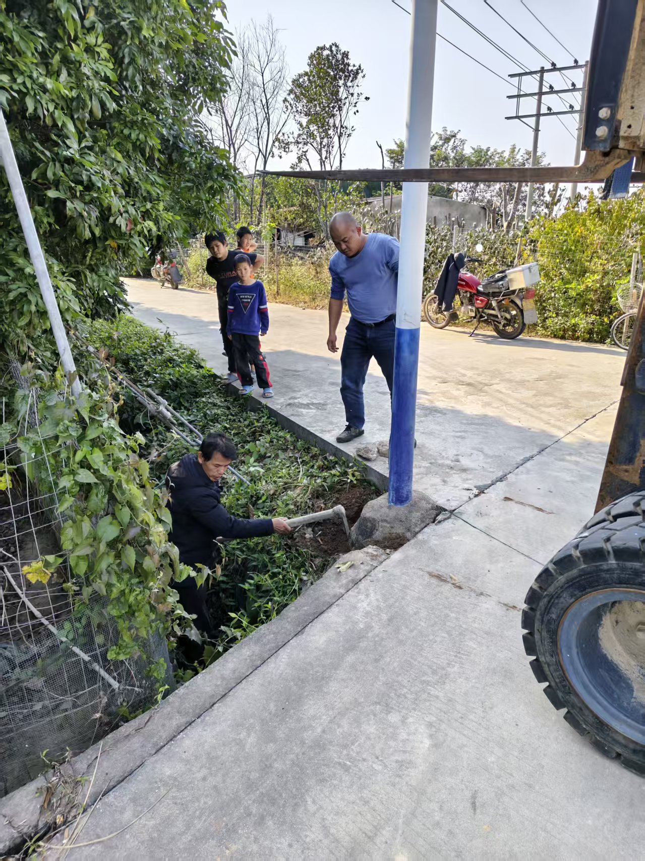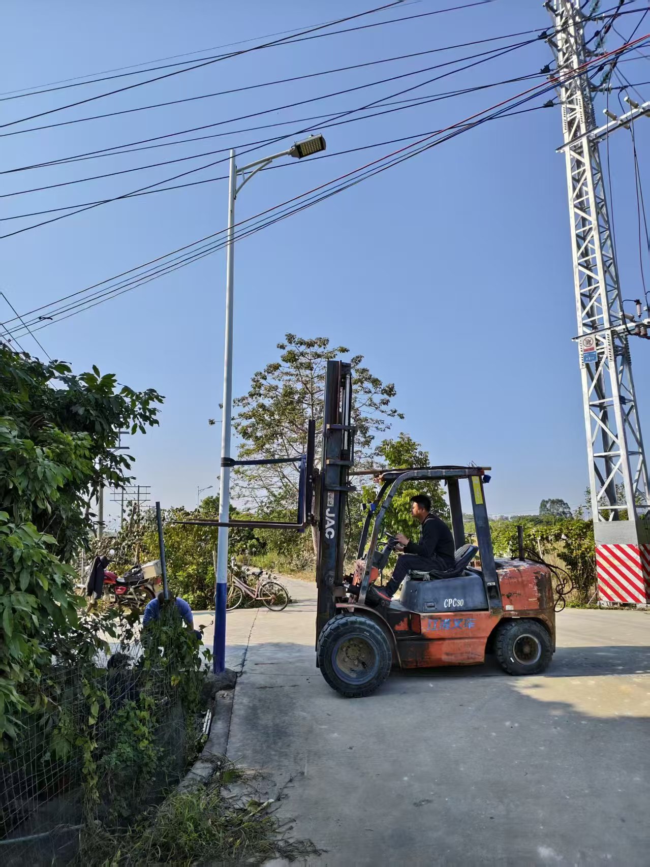书记接热心村民反馈,下埔路路灯倾斜靠着高压线,存在一定的安全隐患,村委第一时间组织工作人员进行修缮。