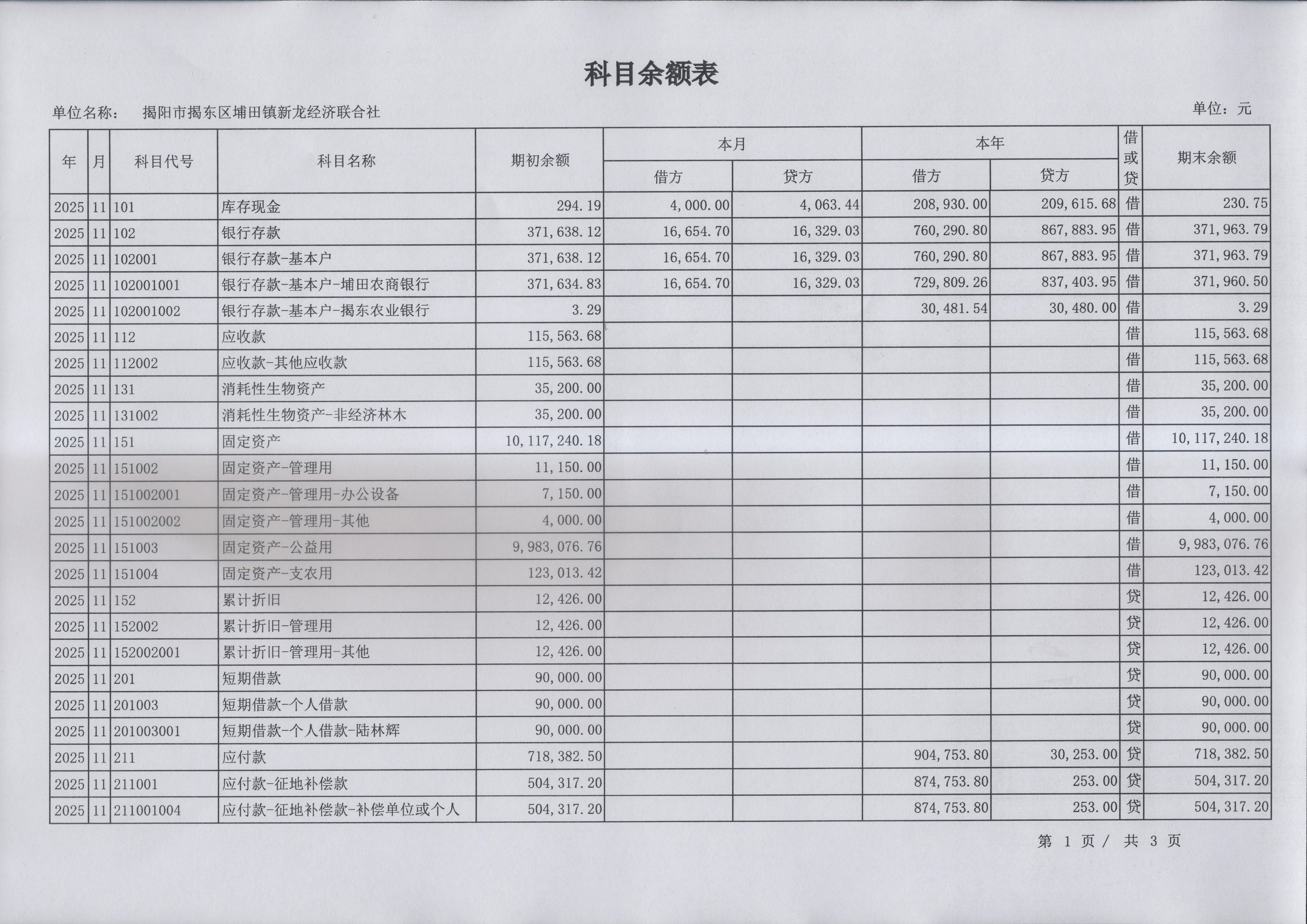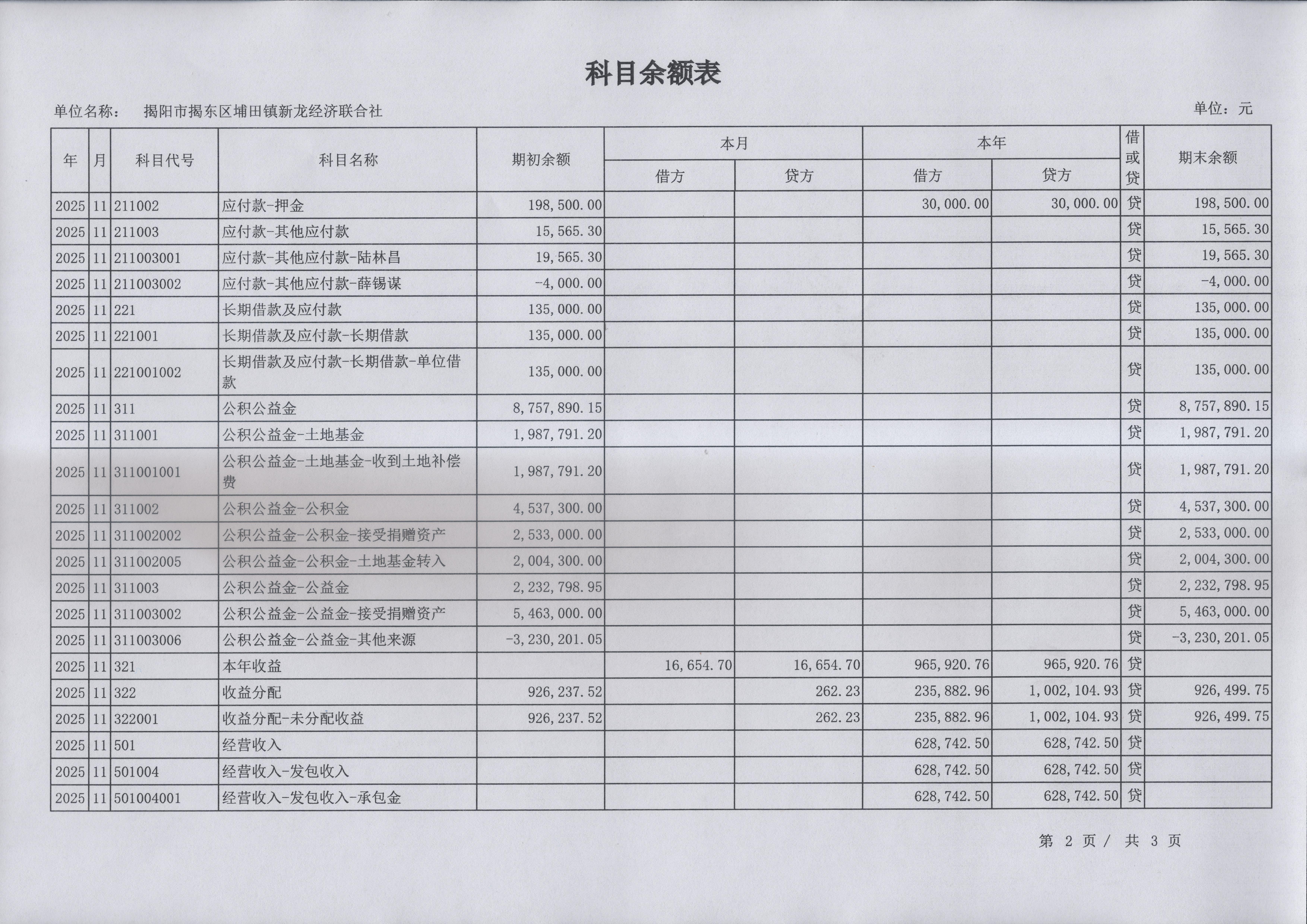 2025年11月集体经济