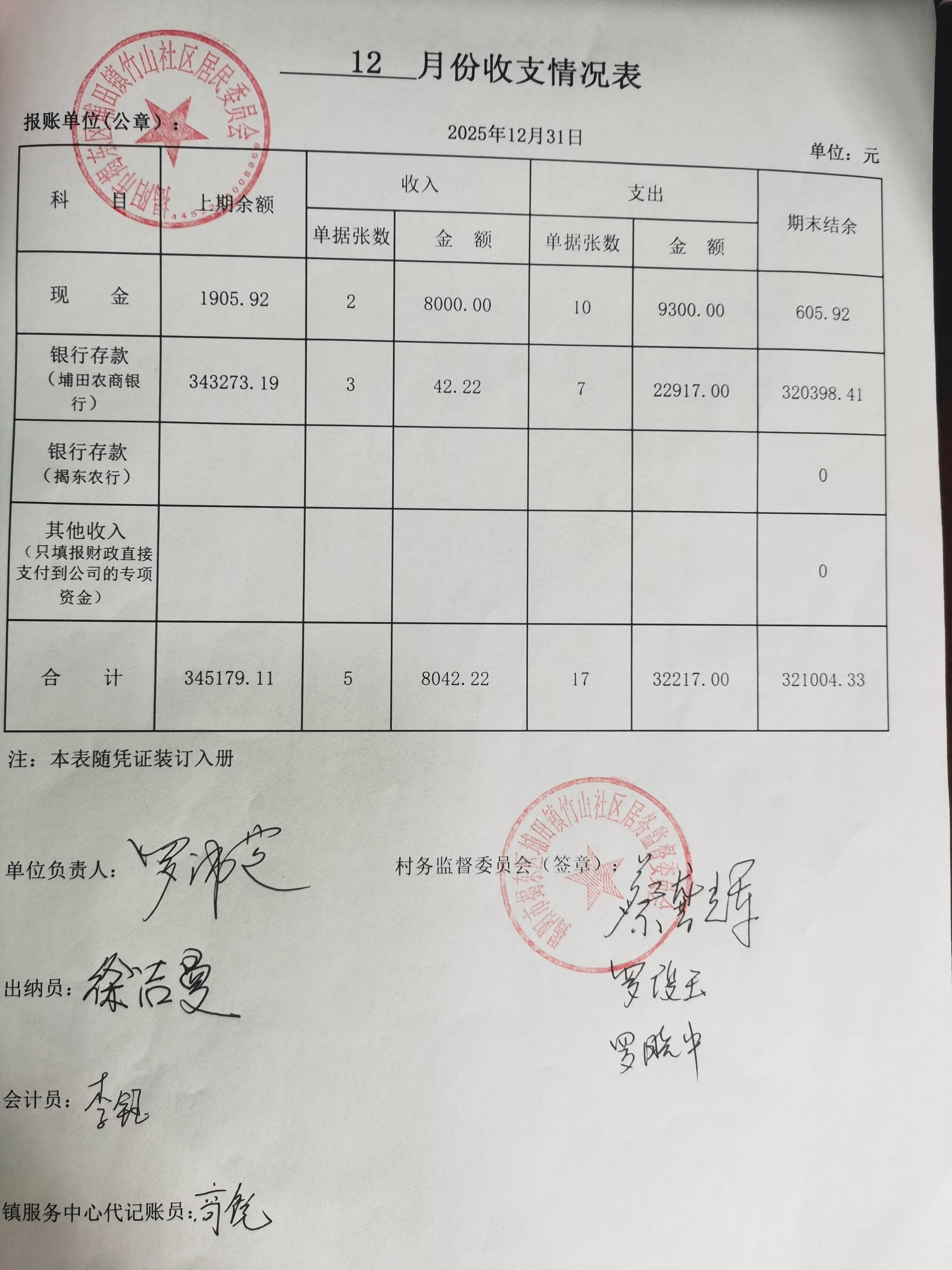 2025年12月财务收支情况表