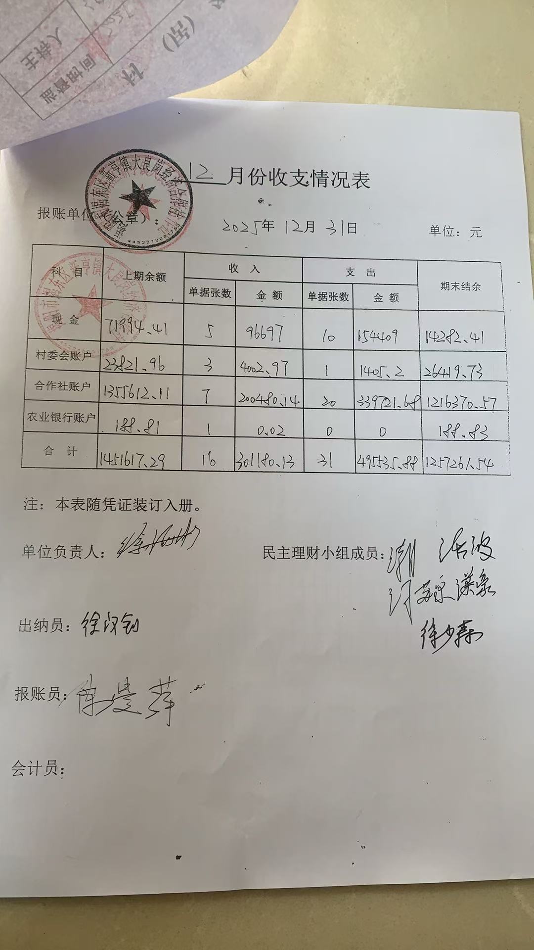 北良村2025年12月收支情况表