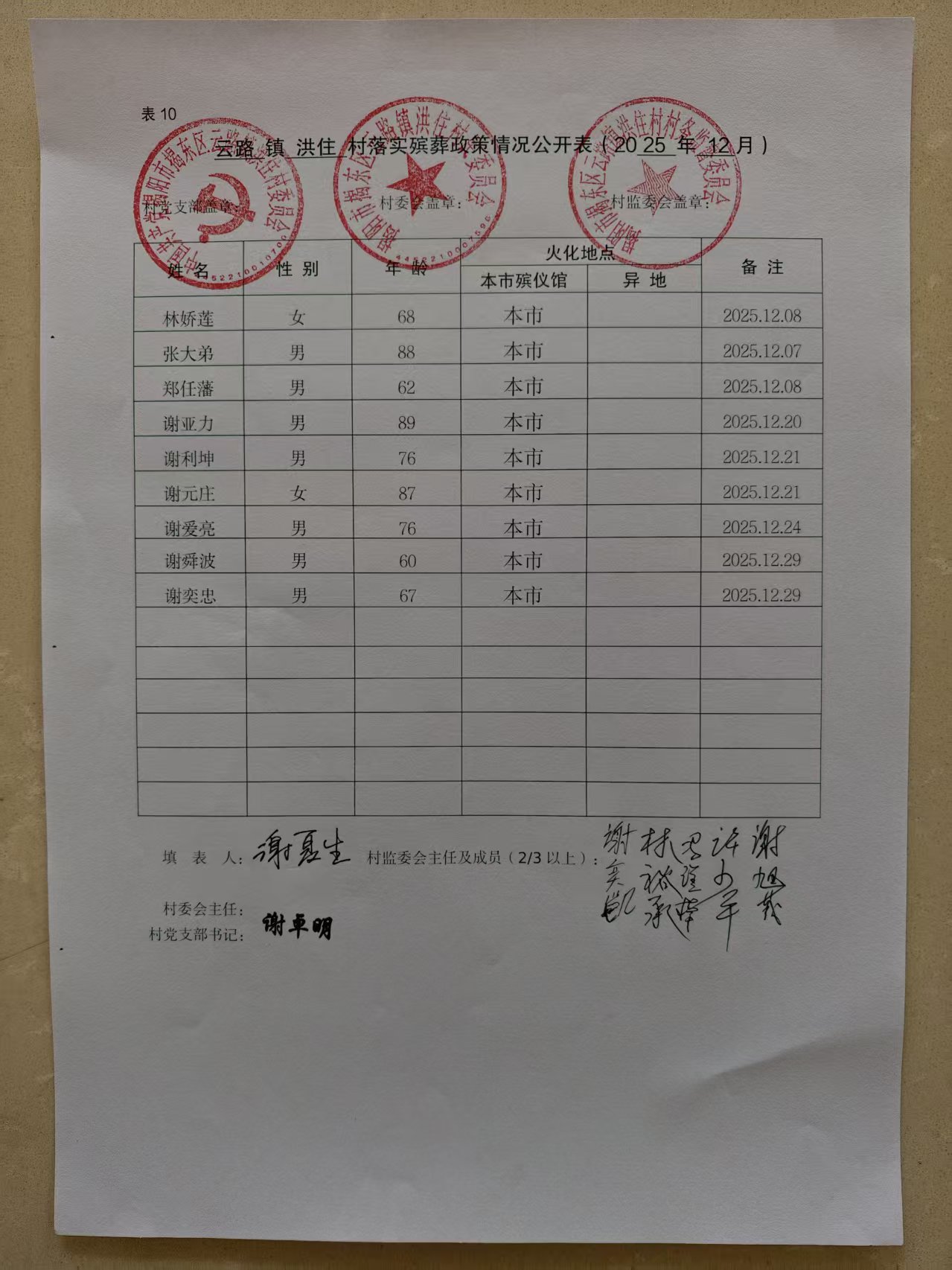 殡葬政策情况公开(2025年12月)