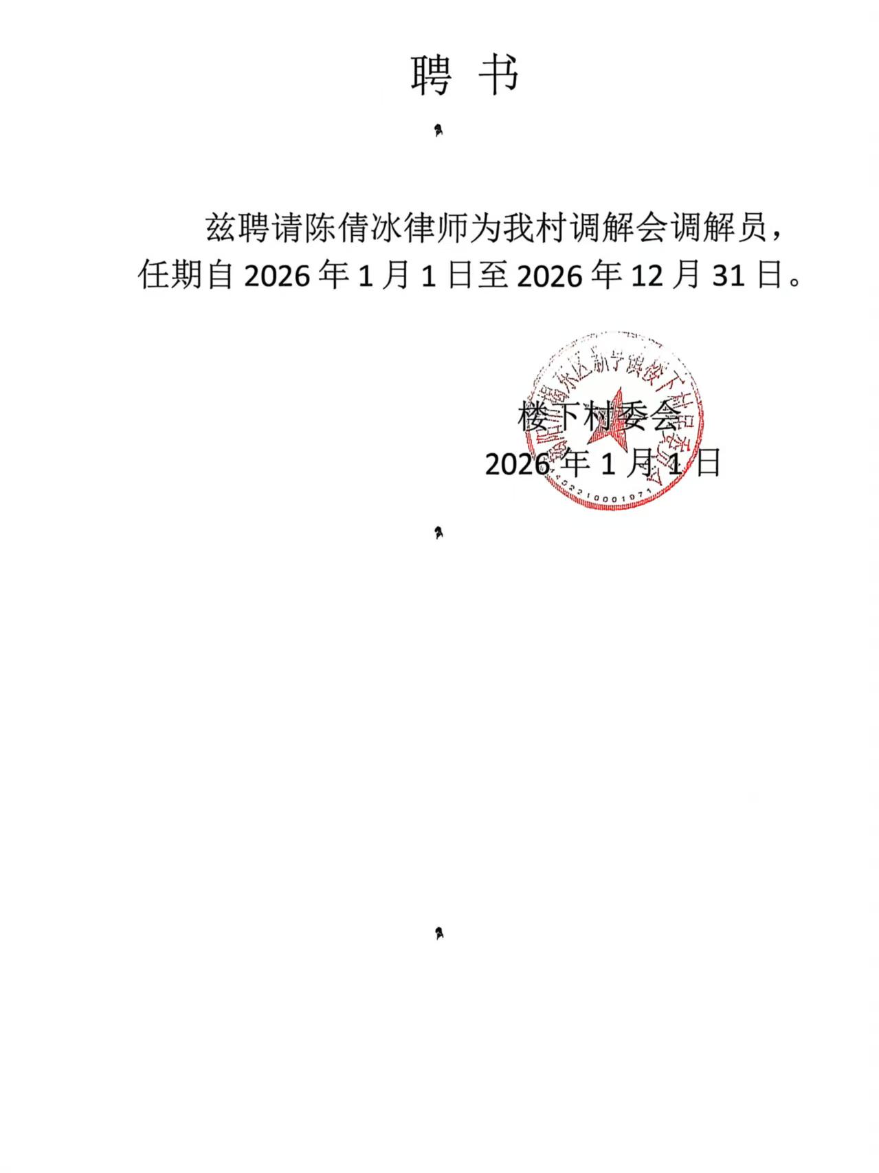 律师陈倩冰聘书