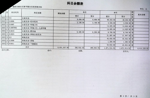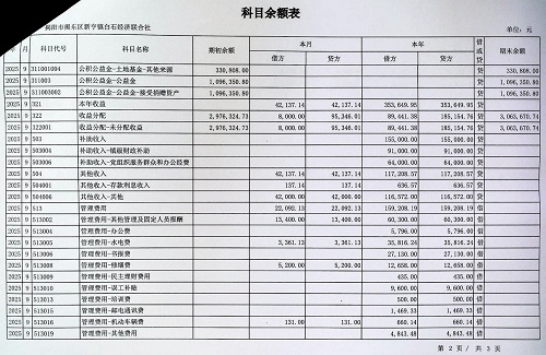 新亨镇白石村2025年9月份科目余额表