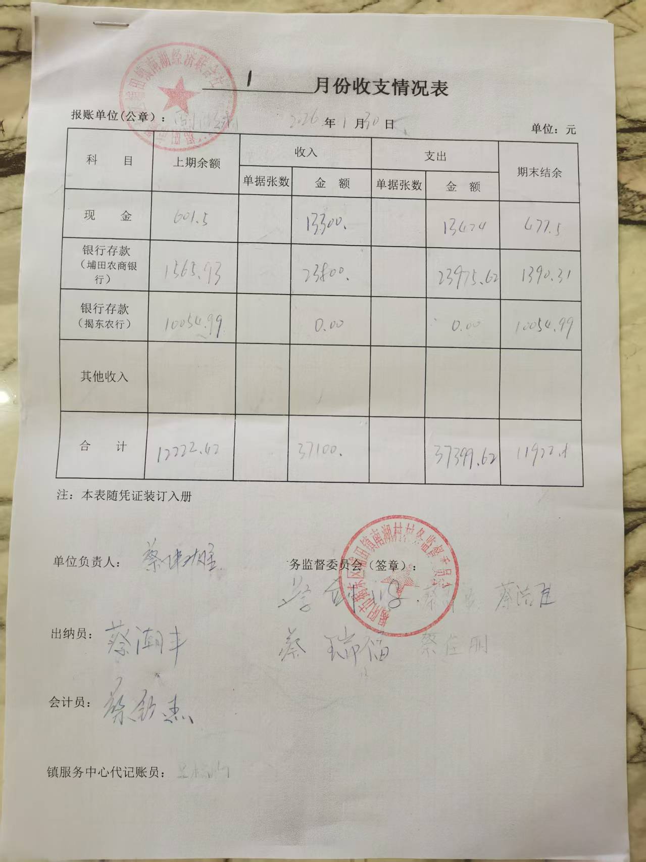 2026年1月份收支情况表
