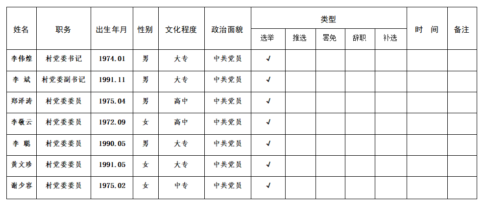 尖山村“两委”干部选举、推选、罢免、辞职、补选情况公开表