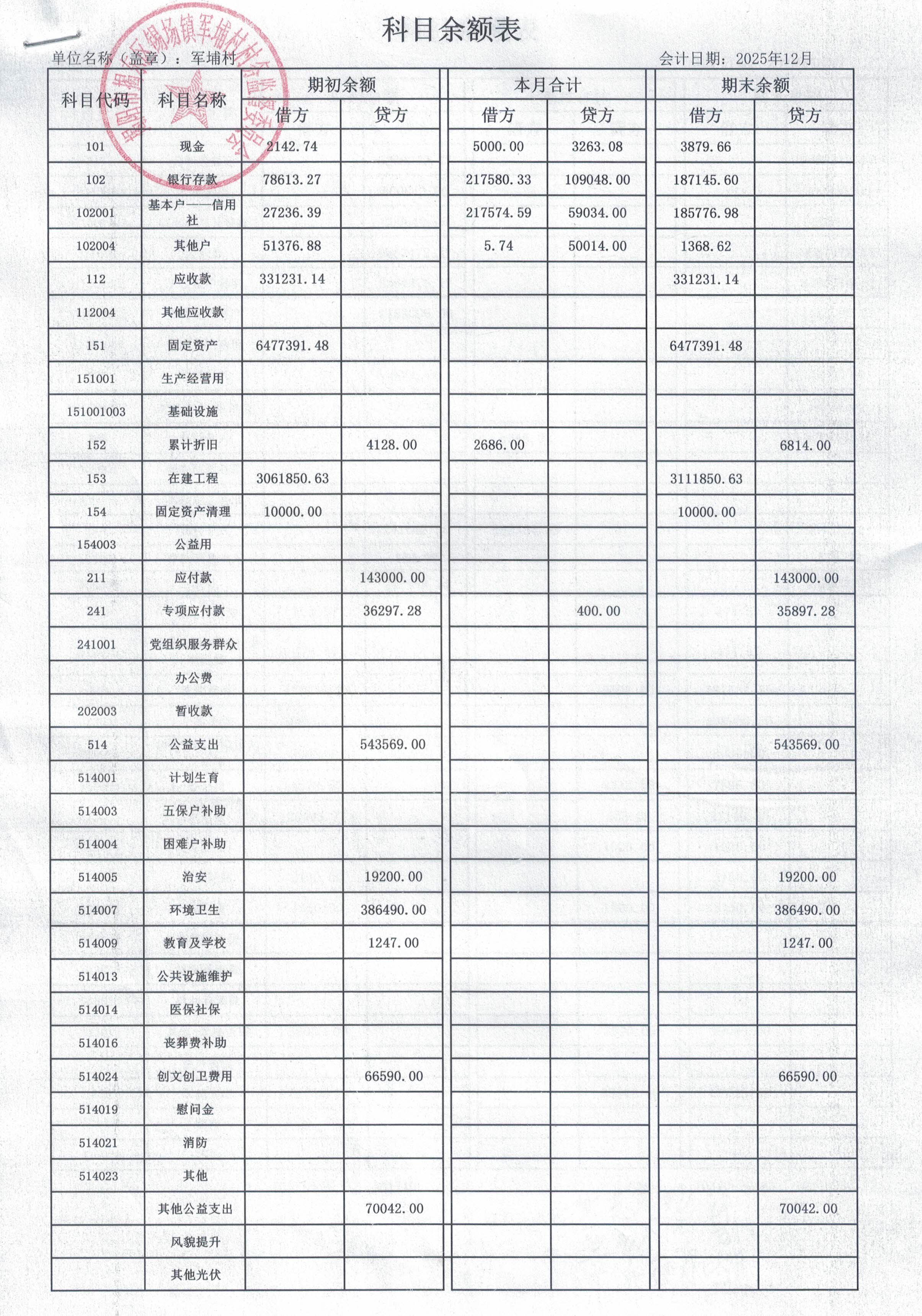 12月11日 付军埔村特色精品村建设项目工程款,50004元