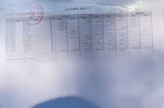 2025年12月份科目余额表