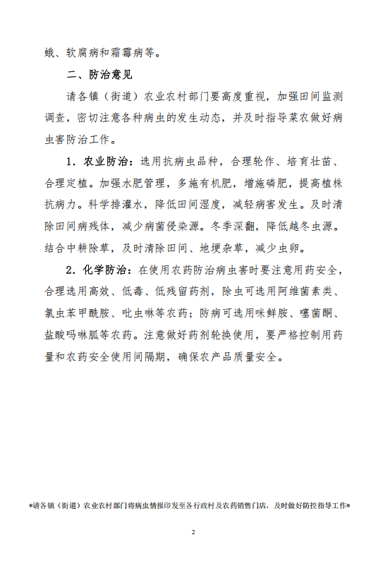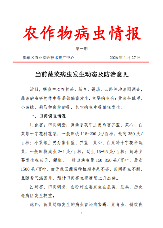 农作物病虫情报第一期-当前蔬菜病虫发生动态及防治意见