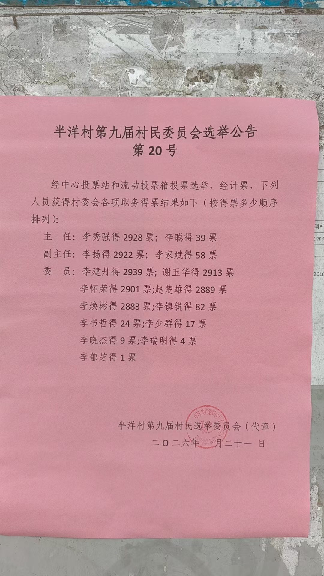 玉滘镇半洋村第九届村民委员会选举公告(第20号)