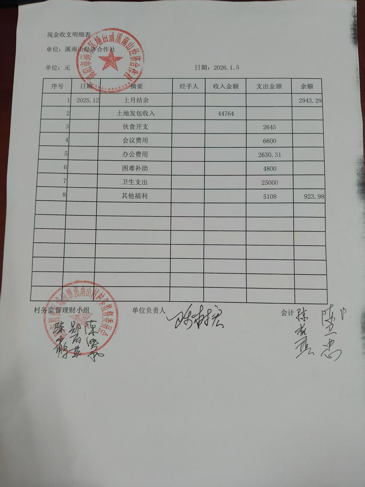 2025年12月份收支情况