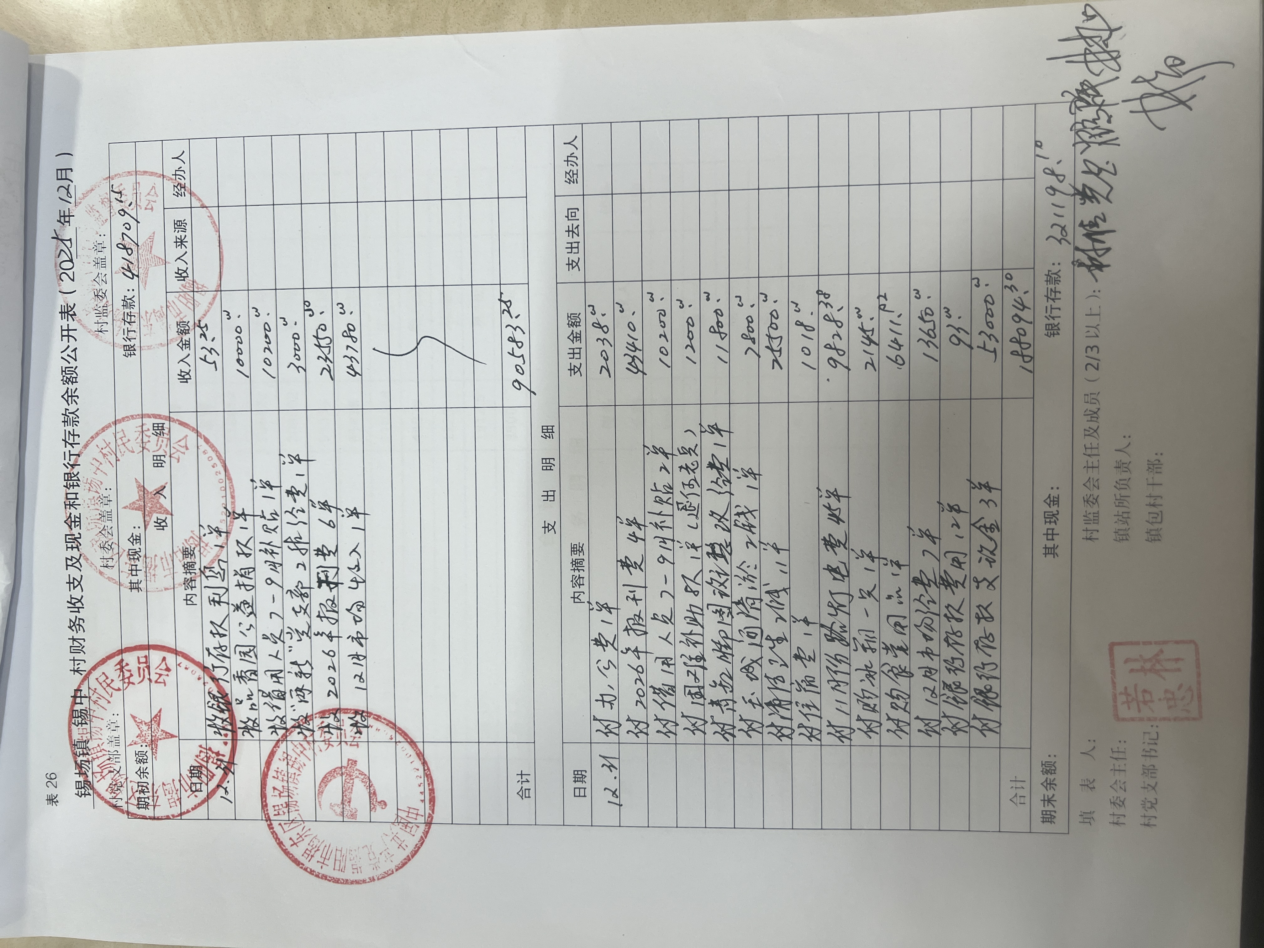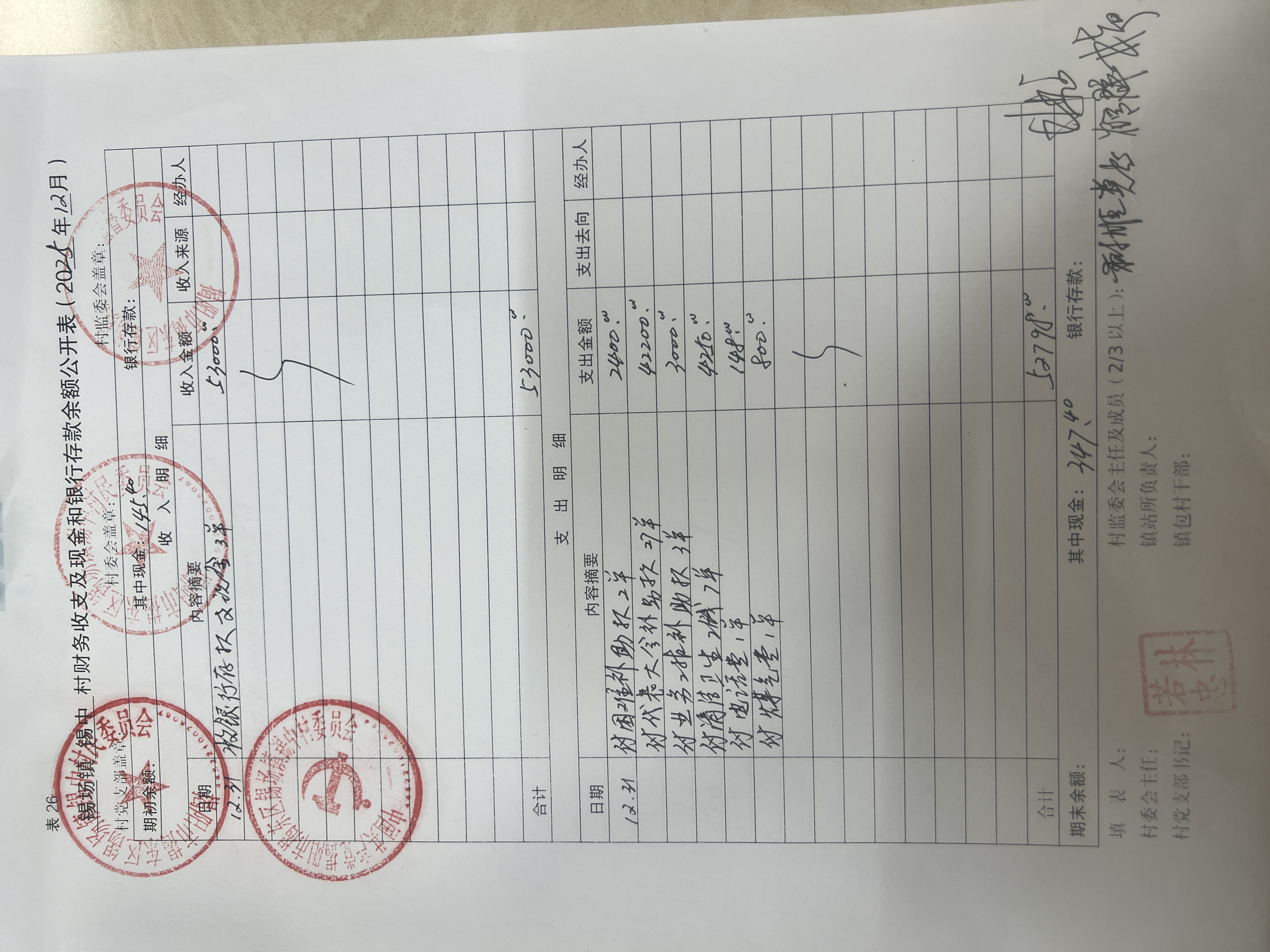 (12月份)各项收入、支出明细及现金、银行存款余额