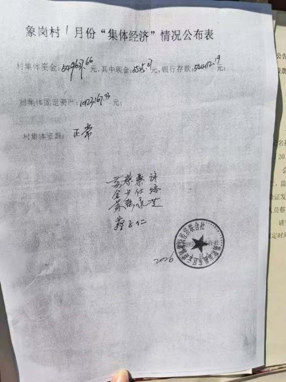 象岗村1月份集体经济情况公开表
