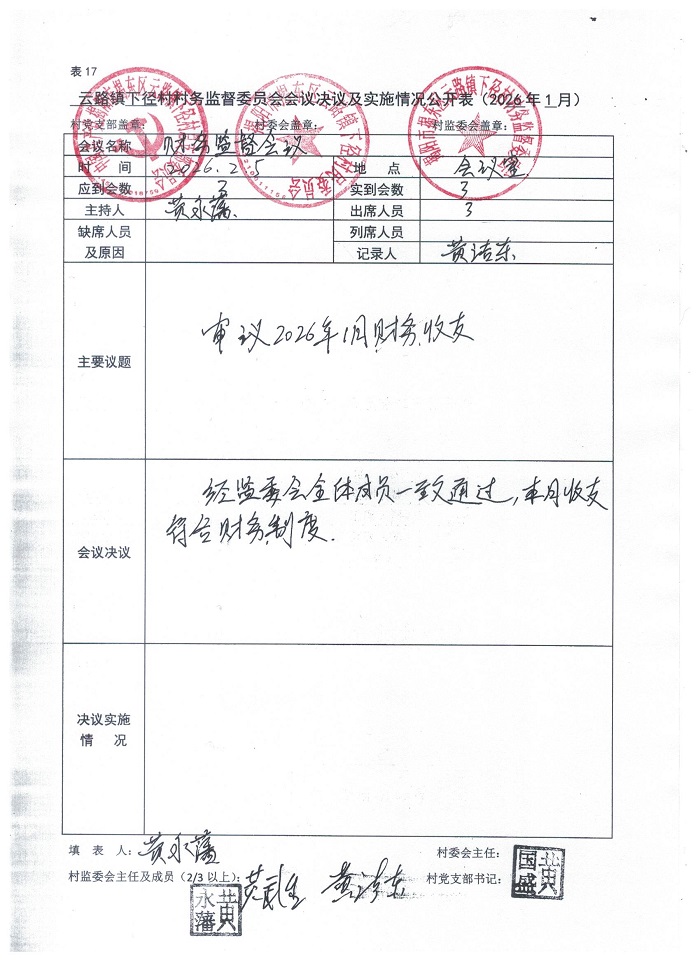 云路镇下径村村务监督委员会会议决议及实施情况2026年1月