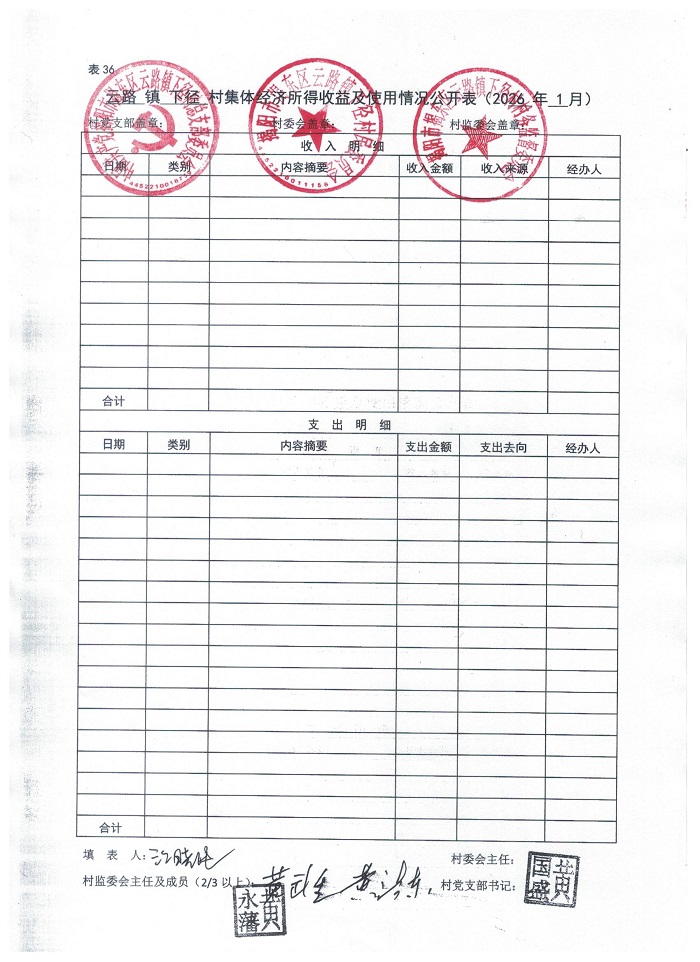 云路镇下径村集体经济所得收益及使用情况公开表2026年1月