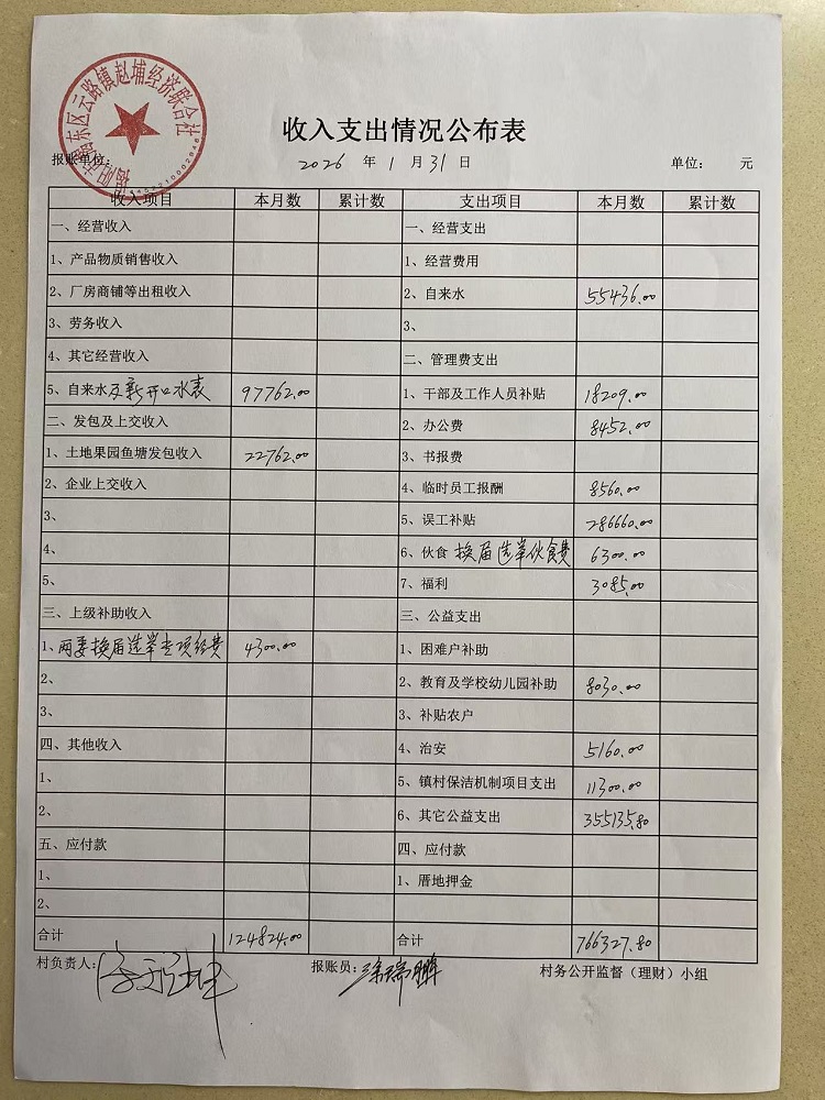 2026年1月收入支出情况公布表