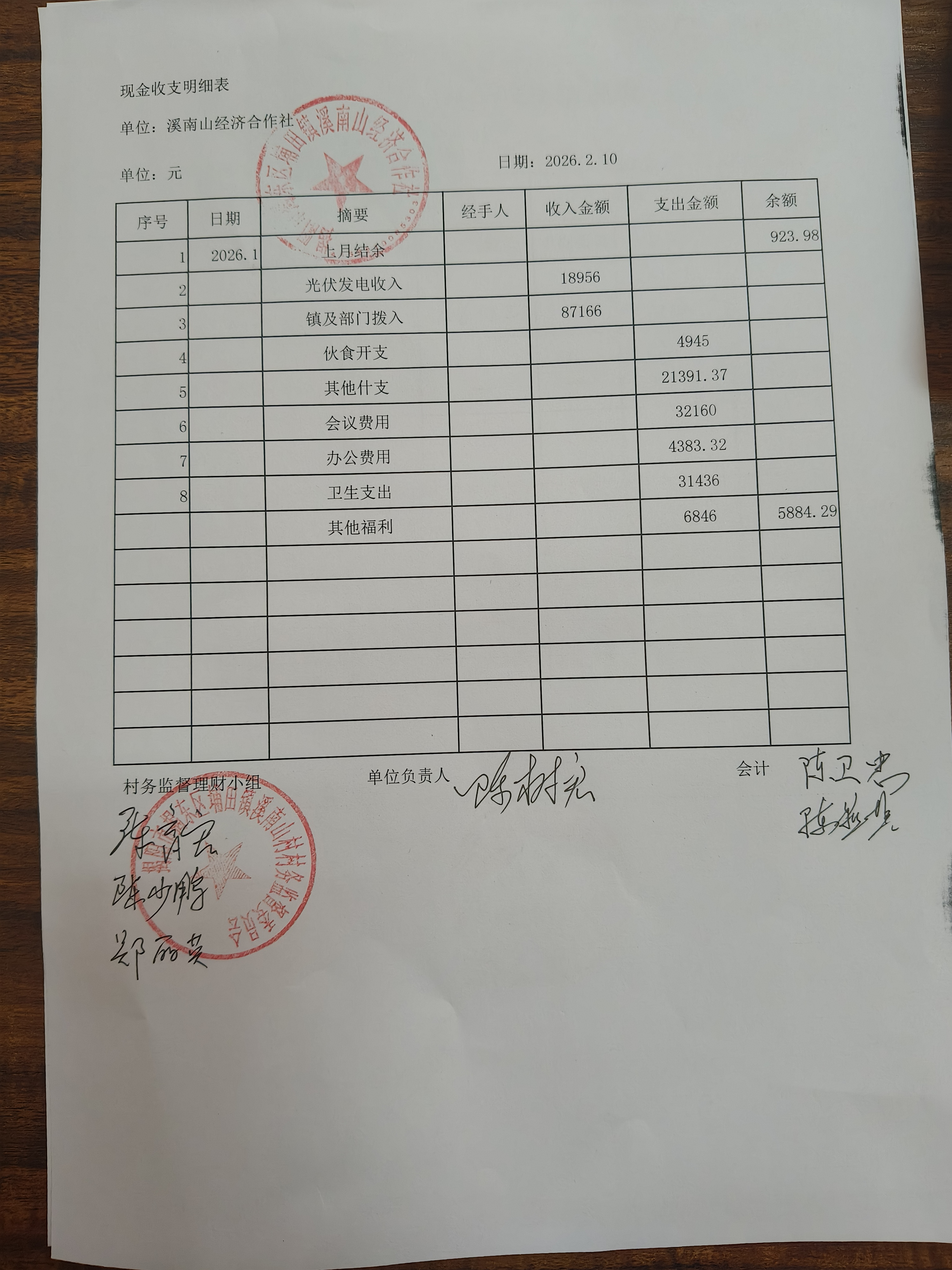 2026年1月份收支情况
