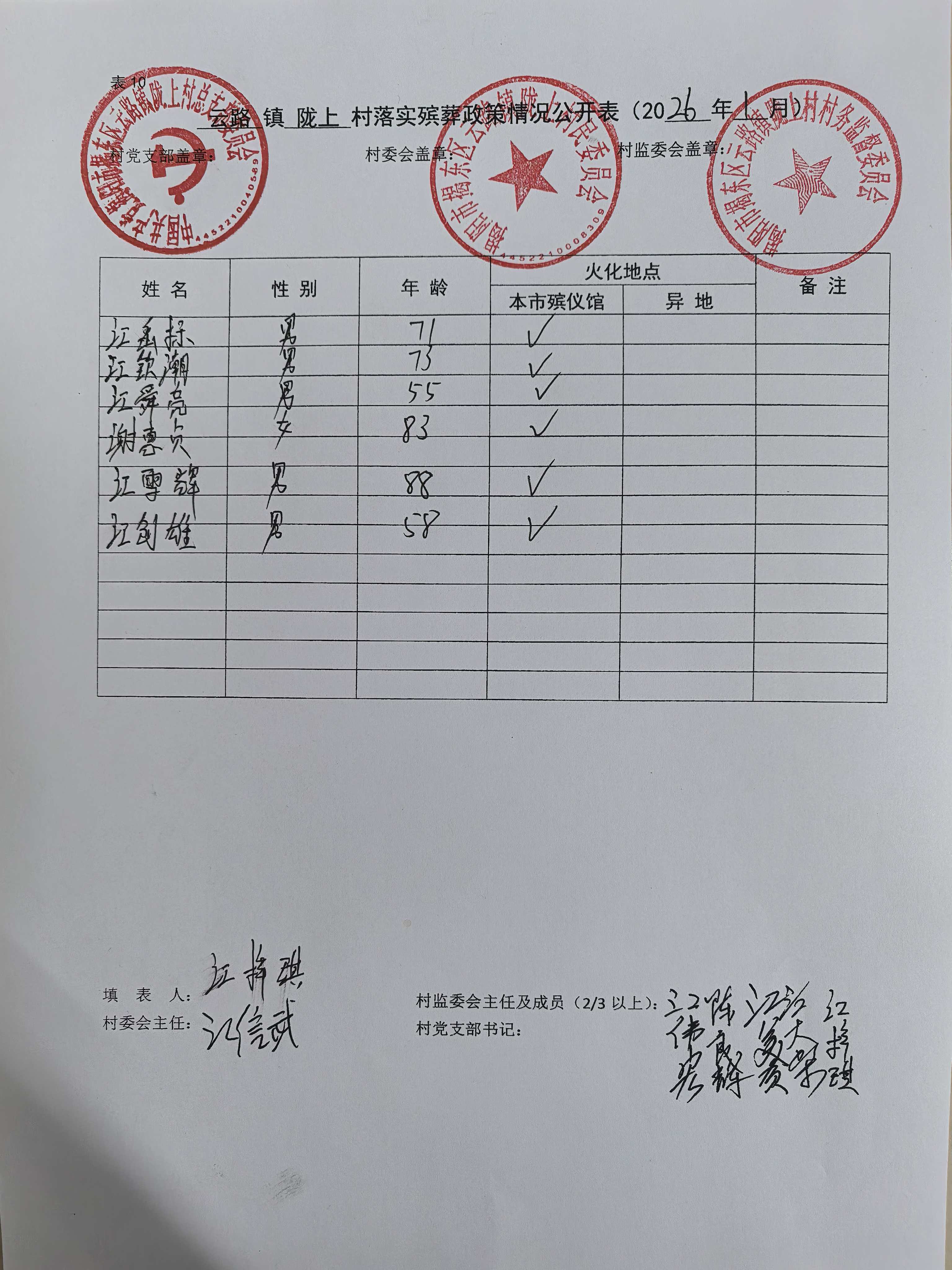 云路镇陇上村落实殡葬政策情况(2026年1月)