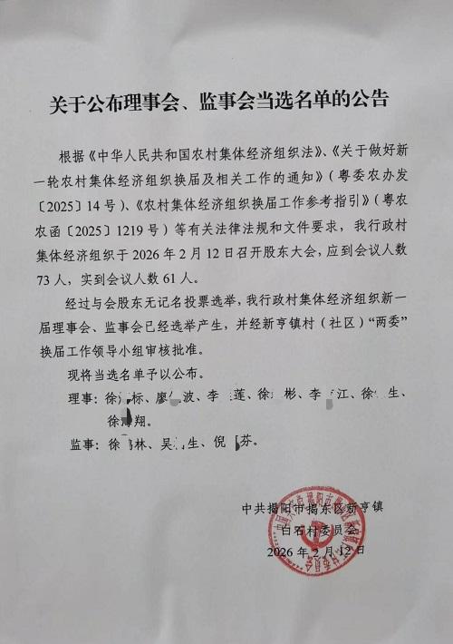 关于公布理事会、监事会当选名单的公告
