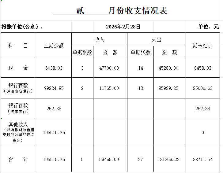 (2026年2月)财务收支情况