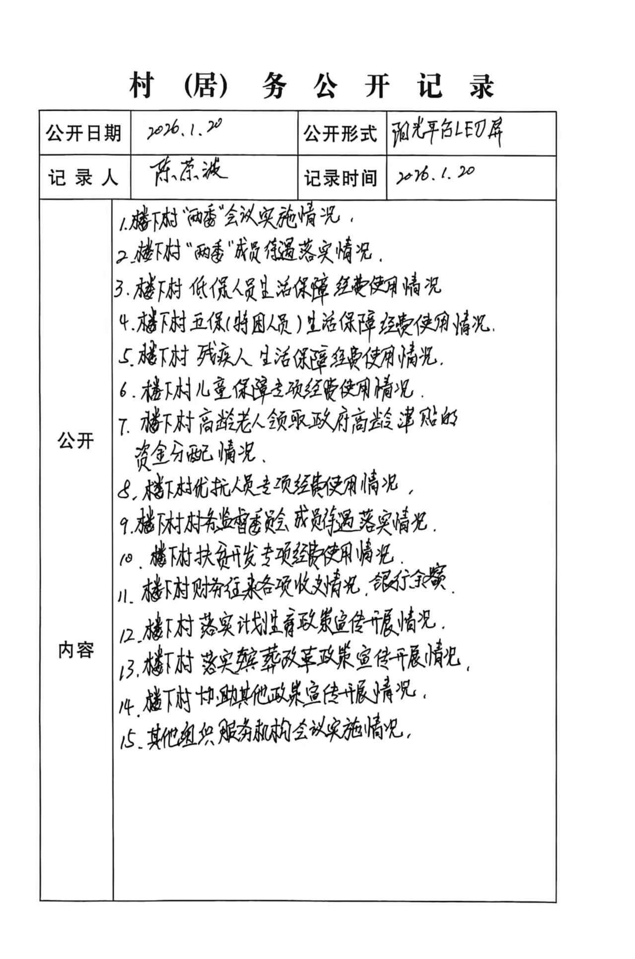 楼下村2026年1月份村务公开